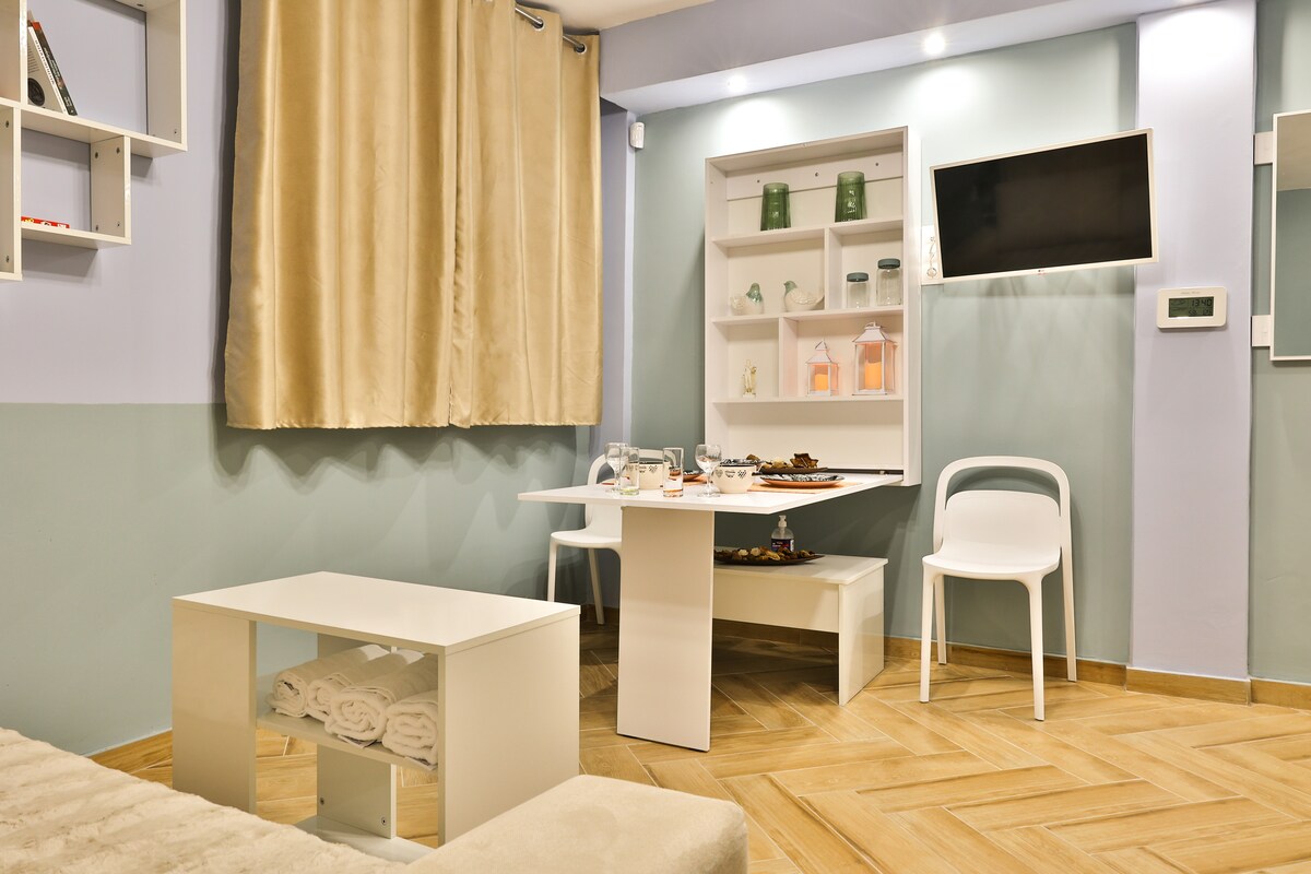 The apartment is 30 square meters big and is located in the heart of Katerini's city center at Pezodromos (Pedestrian) St.. It offers direct access (3 min. walk) to the cafés, the bars, restaurants, super markets, the low cost municipal parking and the local bus station where you can catch a bus which leads to the train station and to Paralia Beach (in aprox. 15 minutes). The apartment is on the ground floor, is fully renovated (in 2023) and equipped. Suitable for leisure and/or business trips.