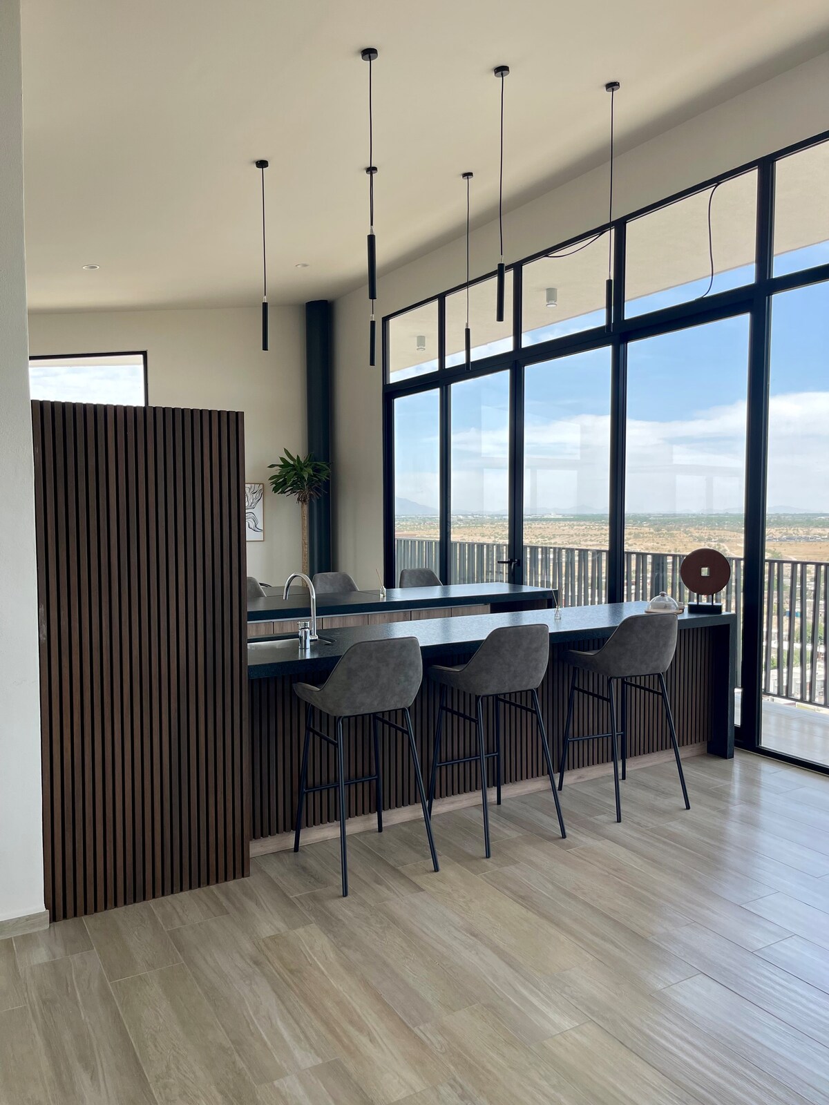 Departamento moderno de diseño industrial, completamente equipado, espacios amplios y cómodos. Cuenta con servicio de internet de fibra optica y Smart TV, ideal para viajeros de negocios y placer. Ubicado en una de las zonas residenciales más importantes y seguras de la ciudad. Rutas de fácil acceso para coches y transporte público. Cercano al Club de Golf Campestre, La clinica 71 de especialidades, el estadio revolución, restaurantes, bares, bancos, lavanderías, estéticas y plazas comerciales.