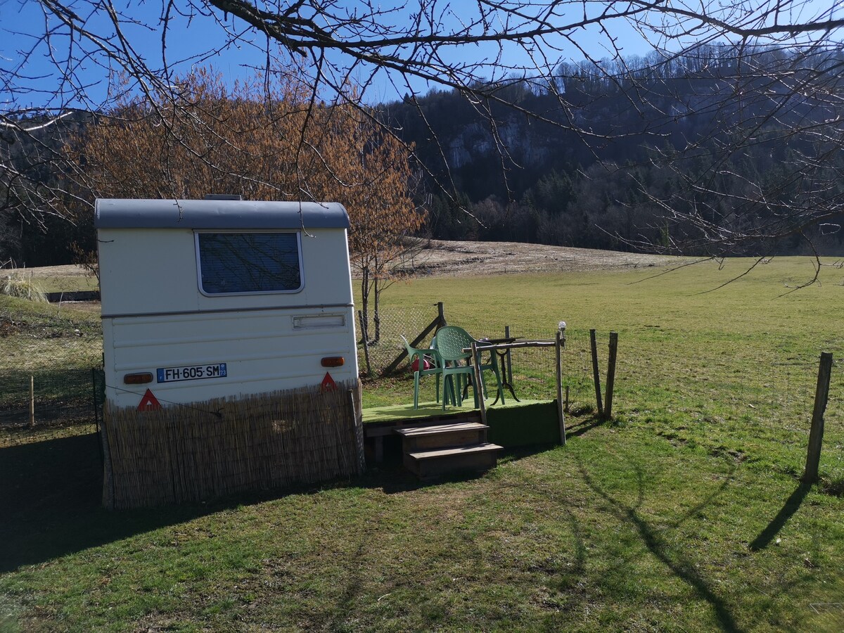 jolie petite caravane entièrement rénovée situer entre lac et montagne dans le parc naturel de chartreuse au calme la caravane est entièrement équipe et elle dispose d'une télévision et de différentes prises elle est également chauffer Électriquement avec un bin d'huile.pour les périodes d'hiver vous pouvez faire de nombreuses randonnée en partant directement de celle-ci nous sommes également proche de station de ski de fond et de piste également de raquette