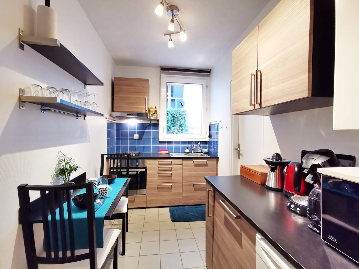 TOURS Centre - Quartier des Halles - apartament cu 2 camere complet renovat, cu gust la parter, pe o stradă liniștită. Acesta este compus din: o cameră principală frumoasă cu zonă de luat masa, un living cu TV, o bucătărie echipată și foarte bine echipată (cuptor, cuptor cu microunde, mașină de spălat rufe, plită, inducție, aparat de cafea nespresso...), un dormitor cu fereastră cu vedere la curte și o sală de duș. Wi-Fi gratuit. Lenjerie de pat furnizată