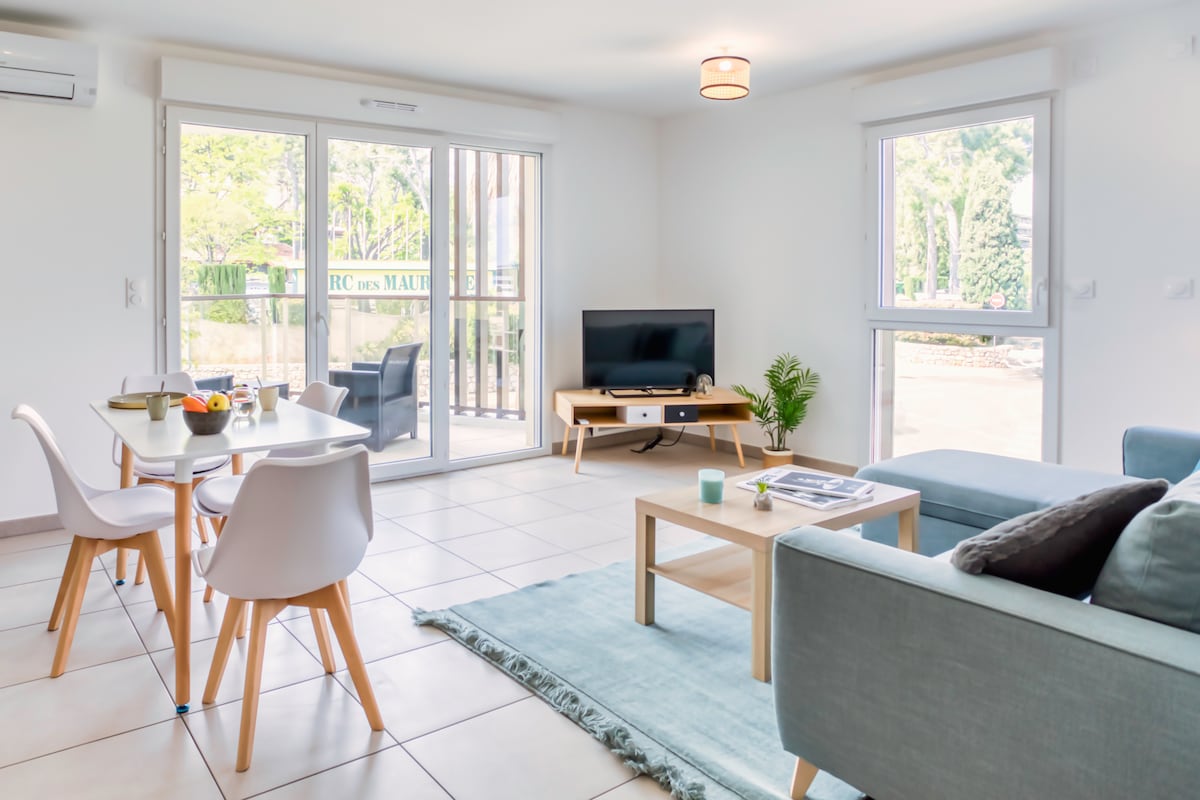 Scor mediu de 4,9 din 5, 39 recenziicalm și modern 1br AC Garage Terrace 300m de la mare