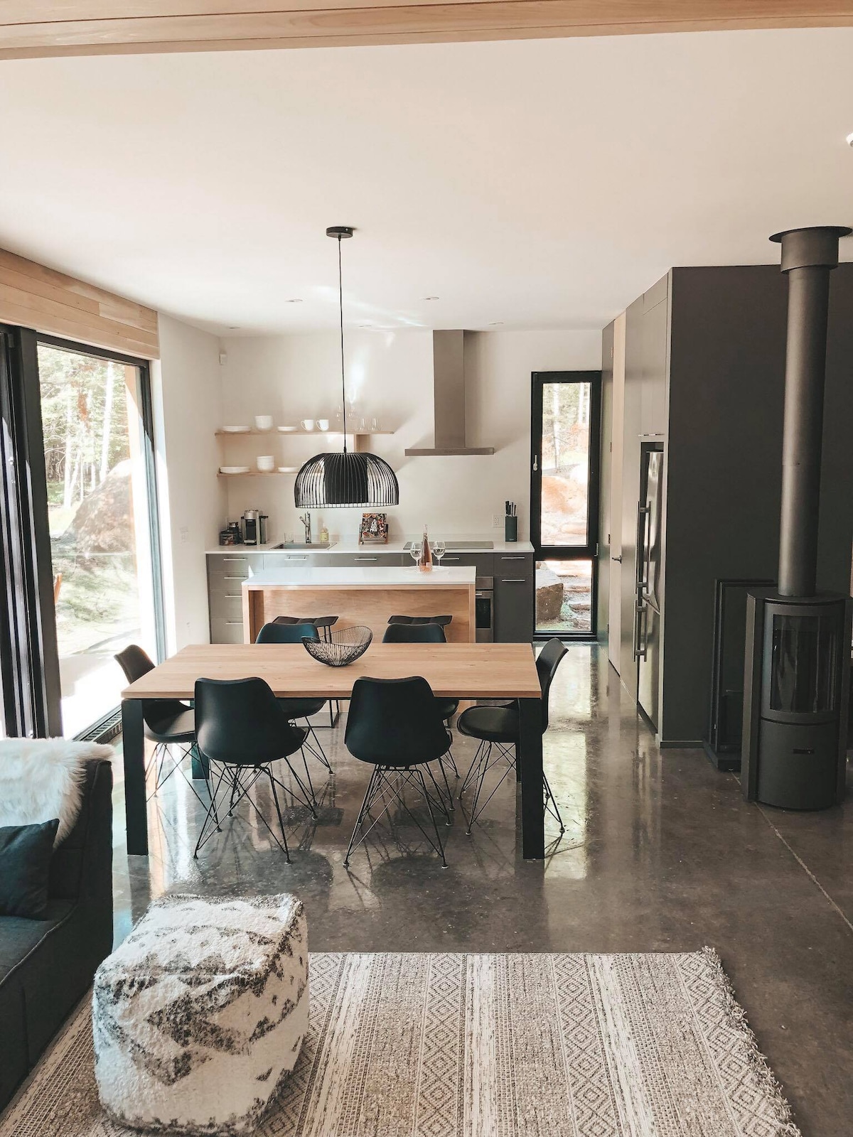 Scandinavian-inspired cabin with hot tub and fireplace, designed to unplug, slow down, and reconnect with nature. Kabinhaus is a modern forest retreat for guests who value quiet and thoughtful design. Set in a secluded community and surrounded by forest, the cabin features floor-to-ceiling windows, abundant natural light, and uninterrupted views in every season. There is no TV by design—instead you get stillness, stars, firelight, evenings, deep rest, and space to breathe. Follow us @kabinhaus