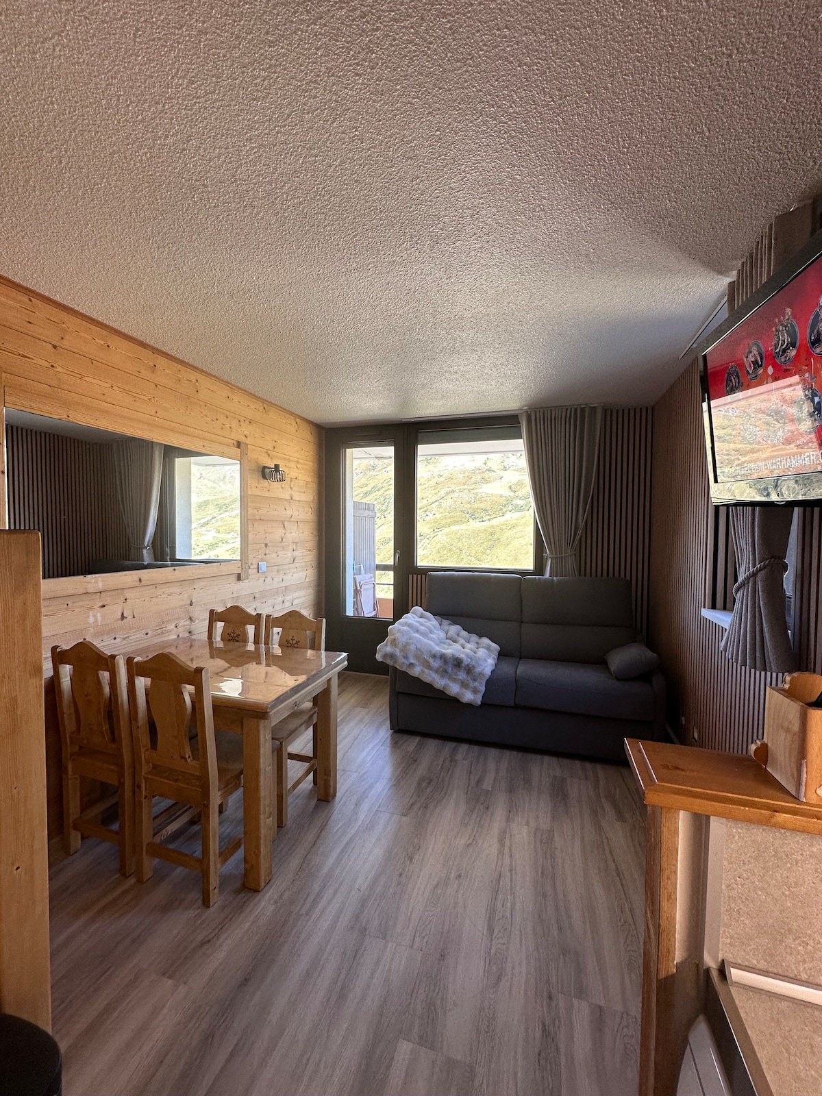 30 m2 confortabil pentru o ședere confortabilă la schi. Bucătărie real echipată, canapea extensibilă de designer și TV de 55", duș frumos 160x80 și dormitor cu pat 140x190. Balcon cu plancha și vedere bolnavă la masă și la satul Les Menuires. Cameră de schi independentă de 6 m2 pentru bagaje voluminoase, biciclete sau alte echipamente Transfer la poalele reședinței pe scurt, am încercat să ne gândim la tot pentru o vacanță de succes. Lenjerie de pat + prosoape opționale Închiriere în săptămâna preferată a lui David