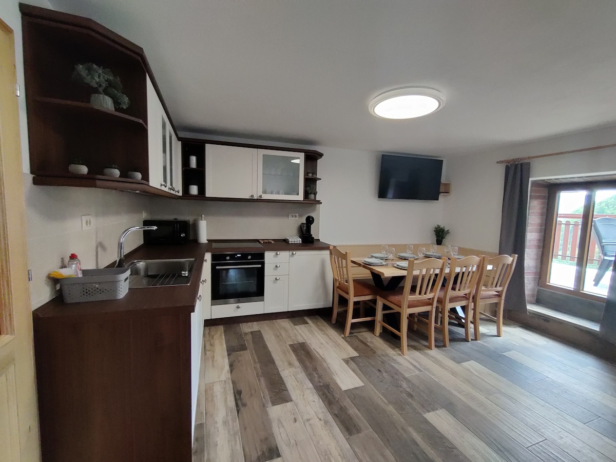 ID RNO: 100335-2 Poți găsi casa noastră cu două apartamente separate într-un sat montan idilic din Stiška Vas, situat în centrul Sloveniei. Este o locație fantastic de accesibilă, la doar 15 minute de mers cu mașina de aeroportul Ljubljana și foarte bine plasată pentru explorarea Sloveniei – cu centrul Ljubljanei și faimosul lac Bled, toate la mai puțin de 30 de minute de mers cu mașina. Dacă ești în căutarea unui loc liniștit și confortabil pentru a scăpa de mulțimea orașului, acest loc este perfect pentru tine.