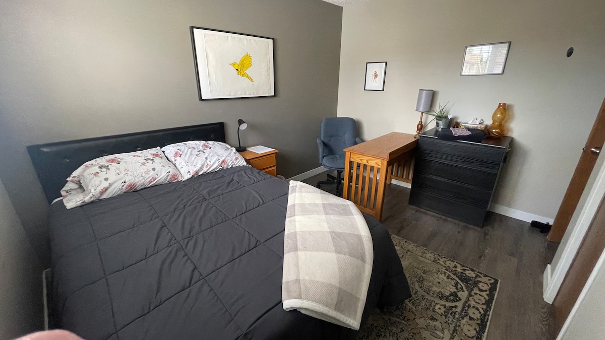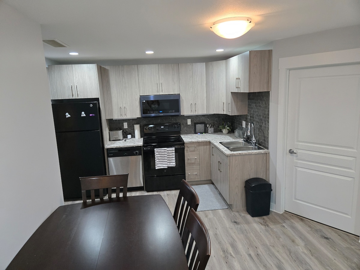 Bucură-te de o ședere elegantă și confortabilă în această suită proaspăt renovată la subsol, cu 1 dormitor. Caracteristicile includ o intrare privată, bucătărie completă, zonă de living confortabilă, Smart TV, Wi-Fi și o baie modernă. Situat într-un cartier liniștit, aproape de magazinele locale și de mijloacele de transport în comun. Perfect pentru persoane care călătoresc singure, cupluri sau șederi de afaceri. Fără fumat, fără vapat, fără alcool și fără droguri, te rog. Numai animale de companie mici.