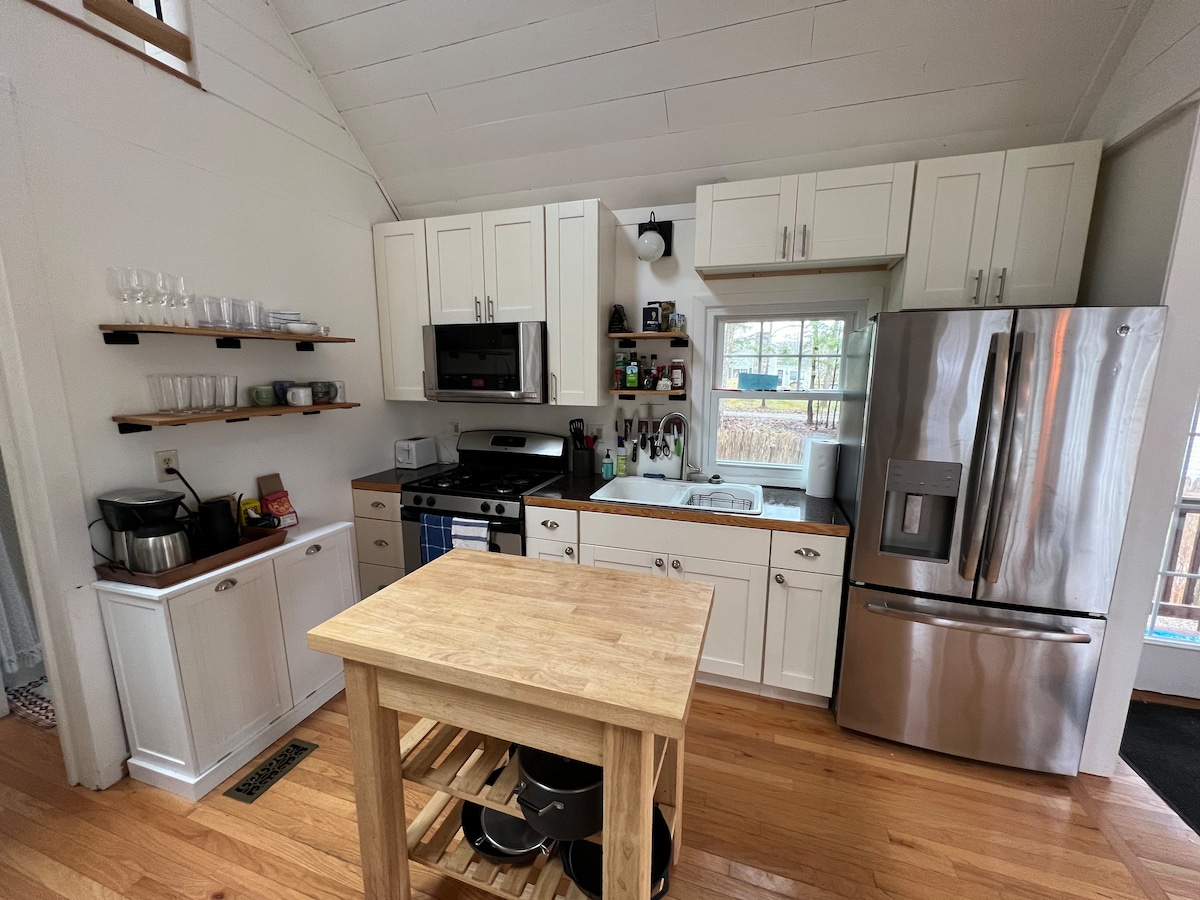 Trezește-te printre copaci vechi de 100 de ani, apoi condu zece minute până în Amherst. Sau fă o drumeție pe ușă spre trasee împădurite. Apartamentul se află, împreună cu casa noastră, pe un teren de 5 acri de pădure matură, pe un deal înalt, cu vedere la pădure. Cu bucătărie și mașină de spălat/uscător, apartamentul este liniștit și practic, ideal pentru o escapadă de weekend sau un sejur prelungit, excelent pentru cadrele universitare care au nevoie de spațiu pentru contemplare sau pentru un cuplu care își vizitează familia. (Citește despre aleea abruptă dacă planifici o călătorie de iarnă.)