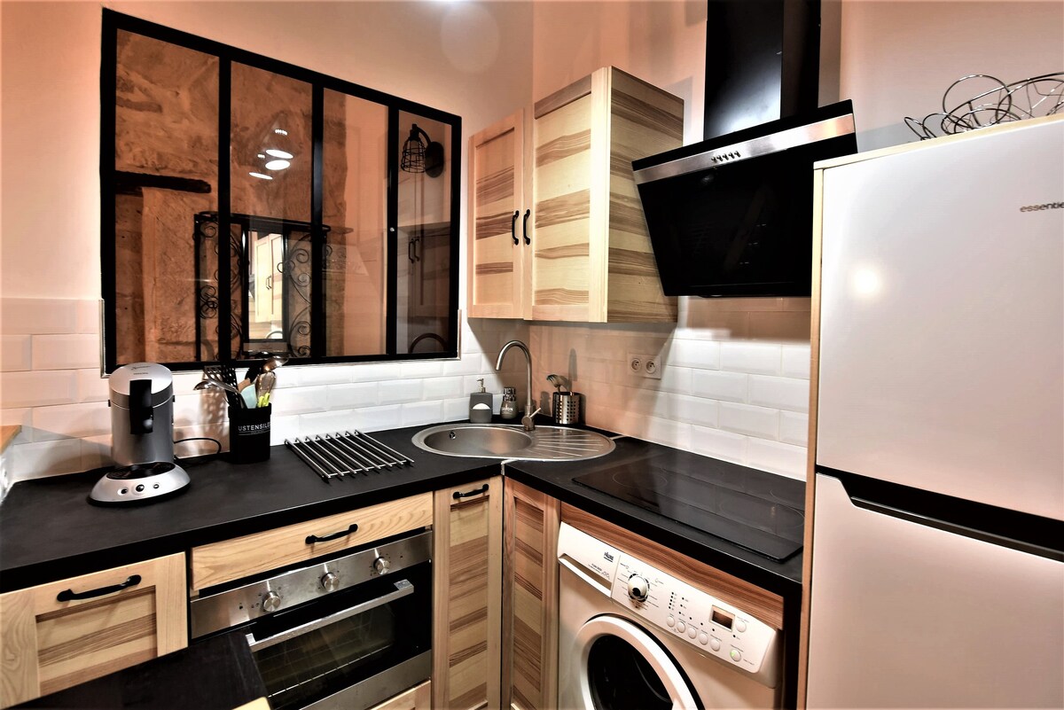 Situat ideal în inima „ L 'Écusson”, centrul istoric al orașului Montpellier, acest apartament reunește o sală de mese magnifică cu bucătărie deschisă într-o arhitectură din secolul al XVII-lea, cu două camere boltite ale secolului al XIV-lea: Un dormitor cu zonă de birou și un lounge cu muzică și cinematografe cu o acustică excelentă. O curte pavată cu baldachin deschis permite accesul la baia cu duș foarte frumos.