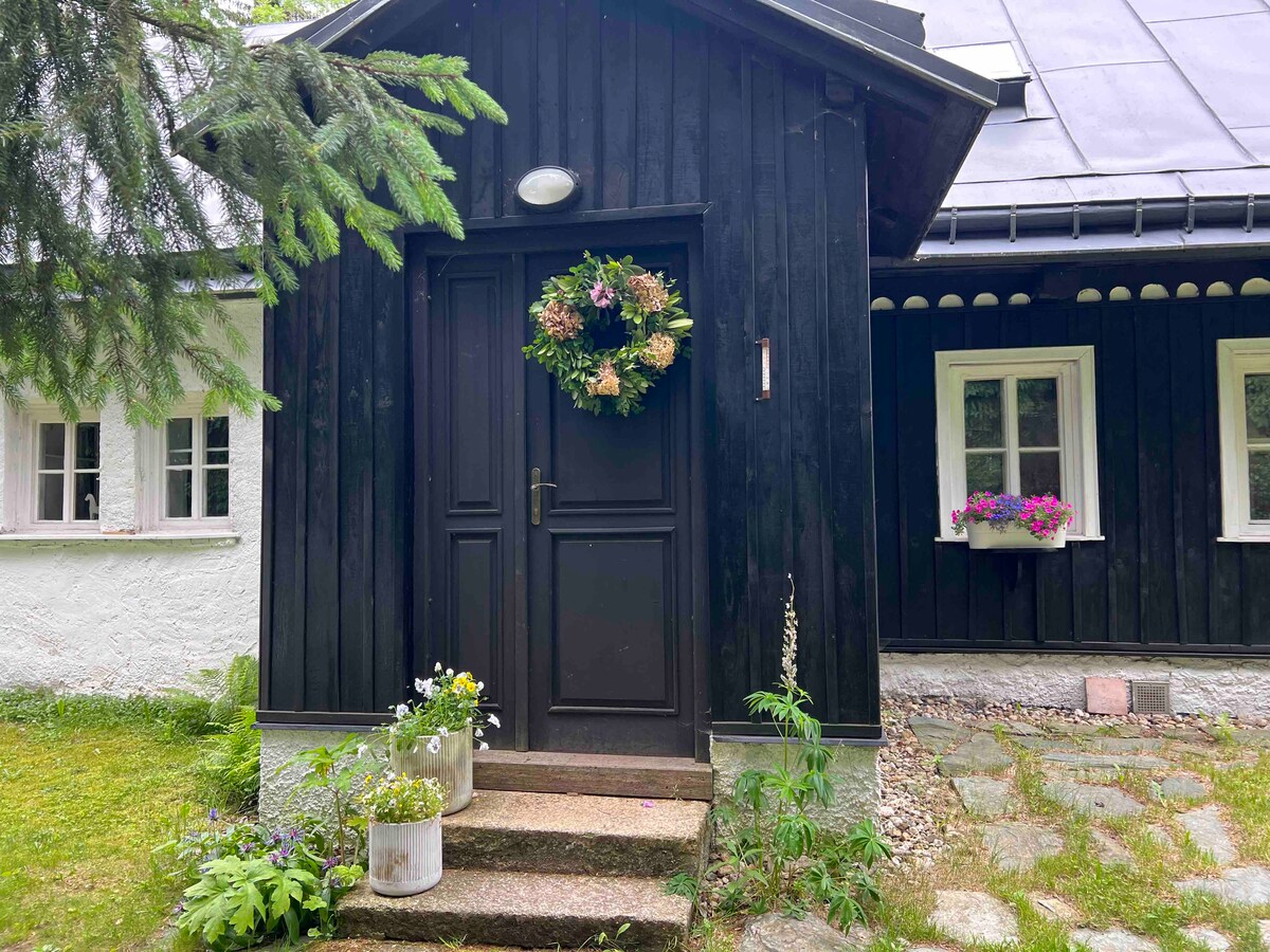 Stylové ubytování v srdci Jizerských hor, kde najde každý to své - ideální pro milovníky pěší i cyklo turistiky, pro skupinu přátel i rodinu s dětmi, pro hledače adrenalinu, kteří se vyřádí na Singltreku pod Smrkem i ty kteří hledají klid a relaxaci v přírodě.....a nebo s vínkem ve vířivce. Děti jsou u nás jako doma - mysleli jsme na ně. Najdou tu paradní domeček se skluzavkou, pískoviště, záhon borůvek, vlastní potůček a všechno ostatní, co mohou potřebovat.