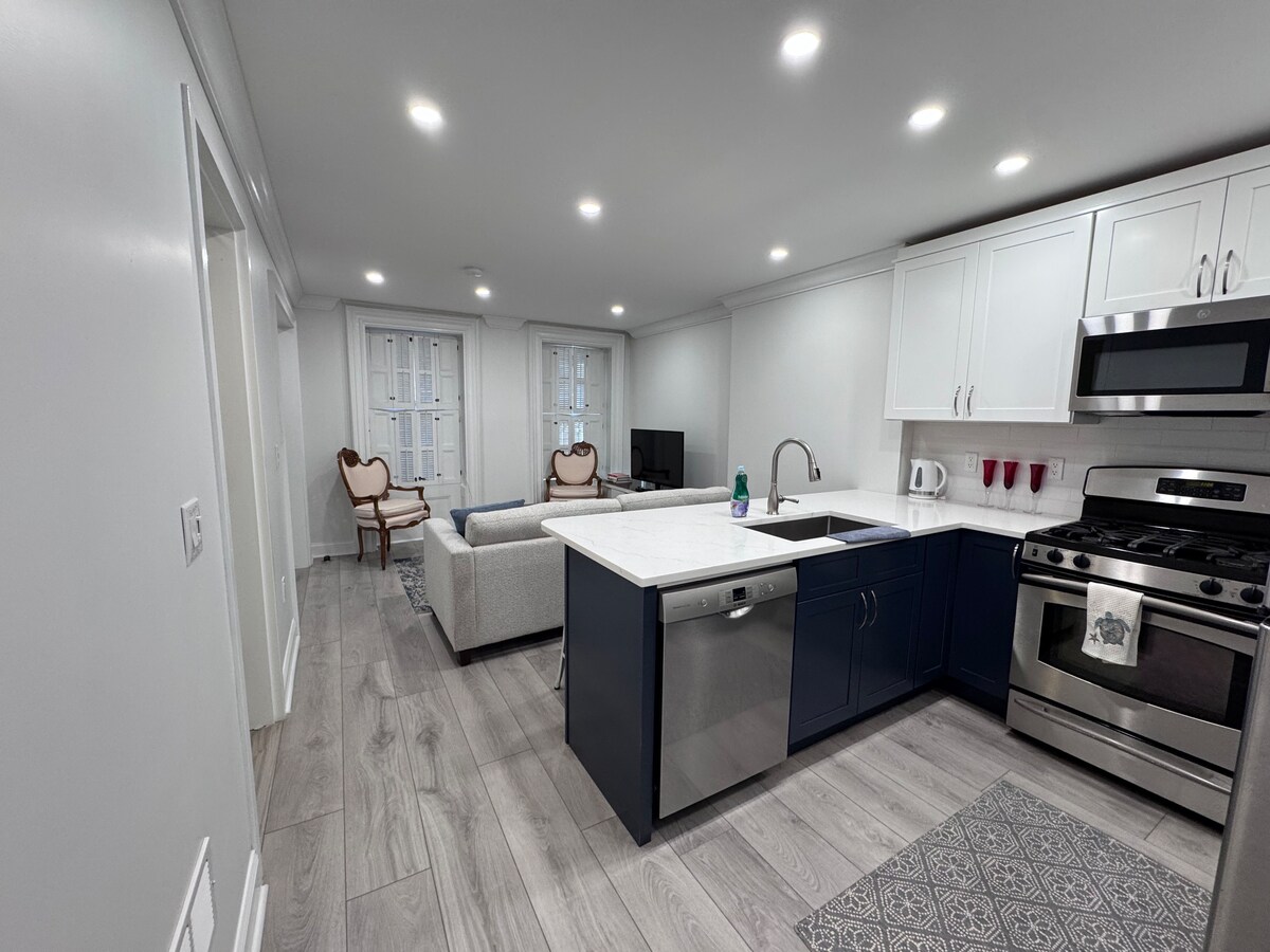 Enjoy NYC living while staying in our stylish, modern 2-bedroom apartment in Paulus Hook, Jersey City’s most desirable neighborhood. The apartment is situated in the garden-level of a historic townhouse, fully renovated in 2019, and is conveniently located for easy access to Manhattan. The Exchange Place and Grove Street PATH stations as well as the NY Waterway ferry are all within an 8 minute walk, with travel time to the city only 15 mins. STR-000738-2023