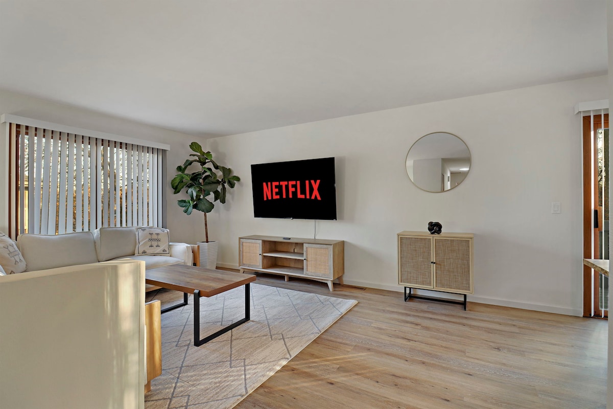 Modern 2 Bedroom 1 bath Home. Extensively sterilized between stays, this home has plenty of table and counter space to spread out, get on high-speed WiFi, and get your work done. Garage Parking for 1 car. • Keyless entry • Roku TV - YouTube TV and easy access to your Netflix or Hulu. • Fast, Dedicated Wifi • 2 Queen beds • sleeper sofa • Fully equipped kitchen w/ Keurig coffeemaker This apartment is 8 miles (15 minute drive) from the Naval Base.
