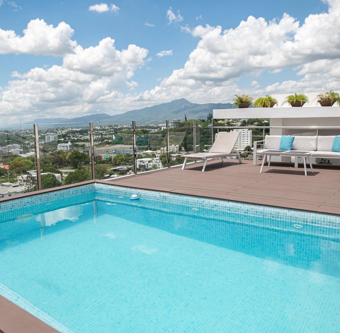 APARTAMENT NOU modern în turnul Rialto de la etajul 12, cu o priveliște uimitoare a orașului Santiago. Este un spațiu confortabil și bine iluminat, cu două televizoare inteligente de 50"și Wi-Fi stabil, cu o viteză de 100 Mbps. Bucătărie generoasă bine echipată și o baie curată și spațioasă. O piscină fantastică pe acoperiș cu cea mai bună priveliște asupra orașului. Parcare privată. Apartamentul este situat într-un complex nou, cu securitate non-stop. Apartamentul este situat central în cartierul La Esmeralda. Toate sunt accesibile pe jos!