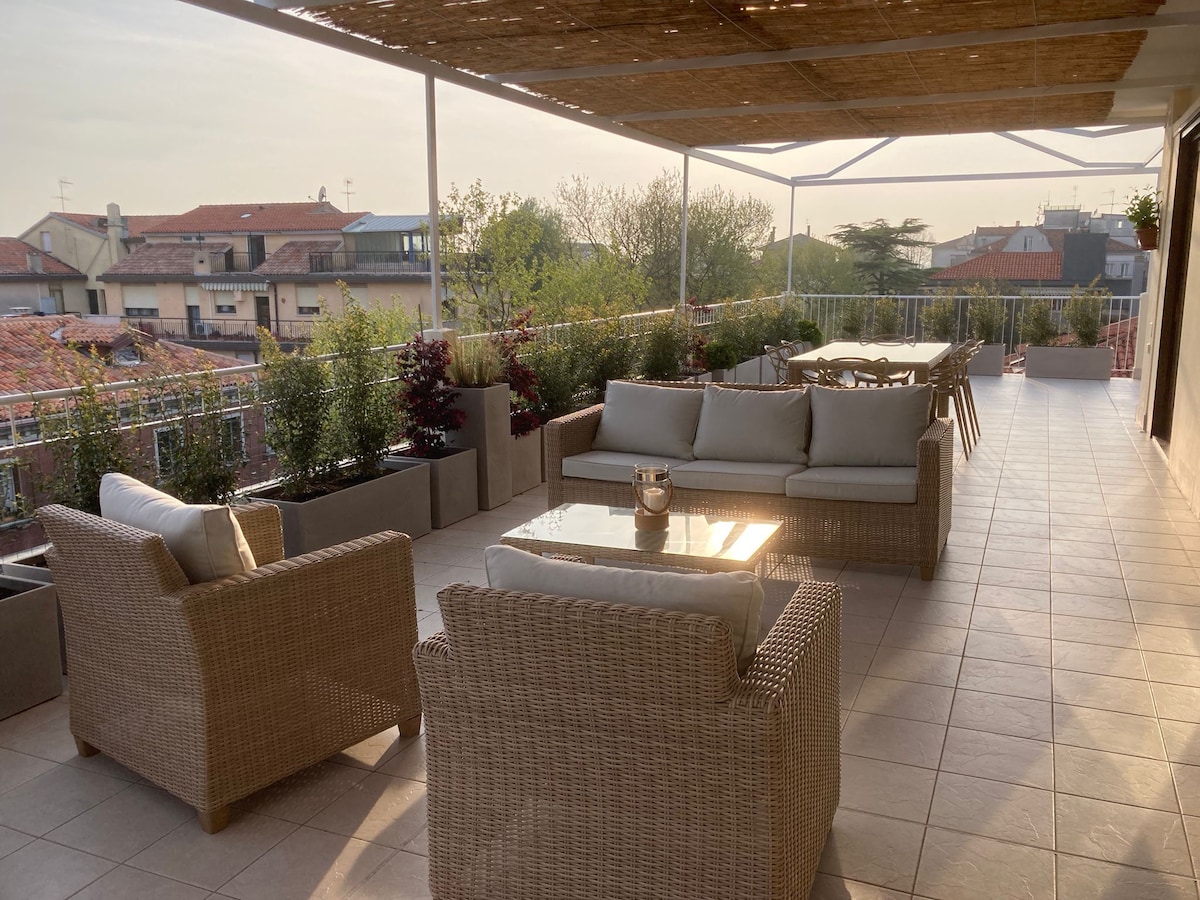 Bucură-te de o vacanță la Lido di Venezia în acest penthouse confortabil. Te vei simți ca acasă și te vei simți bine în interiorul apartamentului, cu un stil special, care îl face unic și te vei bucura de terasa frumoasă care îți oferă o zonă de relaxare, unde poți face plajă și poți lua prânzul cu vedere la parc. La o aruncătură de băț de mare, în centru pentru a avea confortul tuturor magazinelor și serviciilor și la câteva minute de frumoasa Veneție. Pentru a aduce o amintire a unei vacanțe sau a unei șederi frumoase.