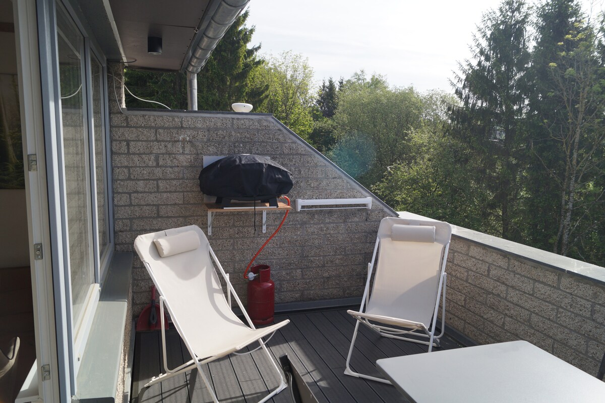 Garsonieră confortabilă pentru self-catering, la 100 m de pădure, într-o zonă rezidențială liniștită. Căile bine semnalizate („punctele de joncțiune” ale rețelei) permit drumeții frumoase din casă. Studioul este situat în mijlocul naturii și totuși frumoasele orașe Euregio pot fi accesate cu mașina în +/- 30 de minute: Liège, Maastricht, Aachen, Monschau! Gara Eupen te invită la o călătorie directă la Liège (Liège), Bruxelles, Ostend sau Bruges ...