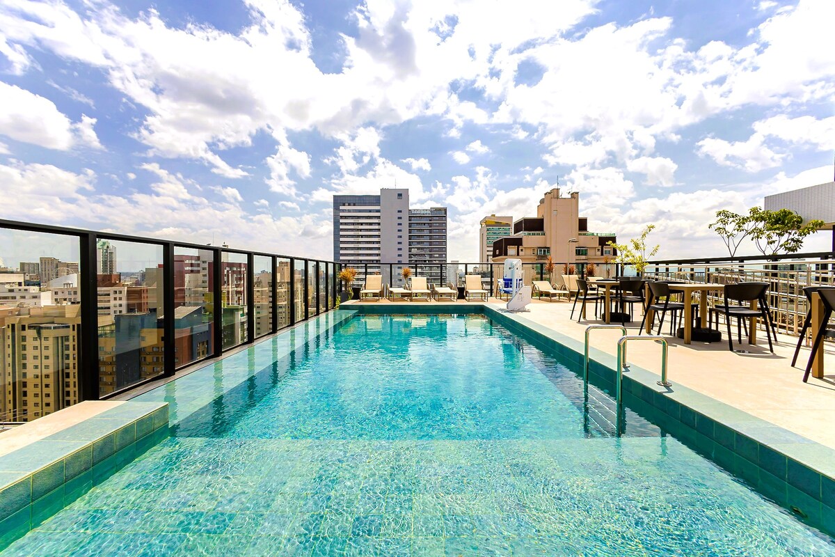 Desfrute de uma estadia confortável e prática na região central. O prédio é novo e oferece estrutura completa com piscina com vista panorâmica, academia, coworking, lavanderia compartilhada, áreas de lazer e convivência, portaria 24h e fácil acesso. Tudo isso em uma localização privilegiada, a poucos minutos dos shoppings Crystal e Curitiba, além de estar cercado por ótimos restaurantes, bares, cafés, farmácias, hospitais e mercados. E ainda tem o Hard Rock Café ali pertinho!