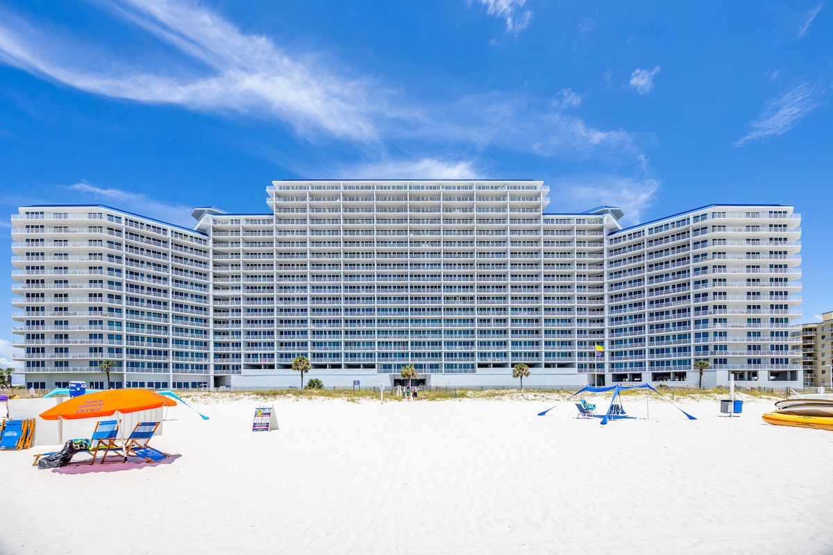 Experience the allure of Gulf Shores & breathtaking beach views from the 9th floor private balcony. Full amenities ensures an unforgettable stay. Ideal for families, work/sport events, romantic escapes, or solo adventures. Right on the Gulf of America’s sugar-sand beach, offers convenient proximity to the State Pier, the Hangout, and beachside restaurants. Reserve Now! *** Military discount available for active/retired military and veterans Royal Palms 902 is privately owned and managed