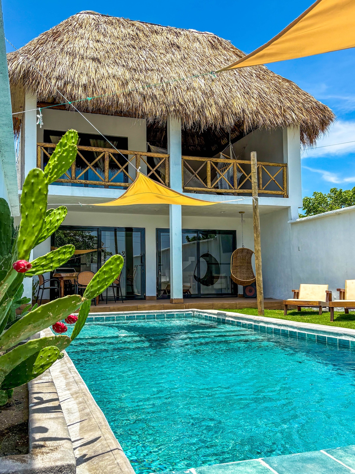 Te estarás hospedando en un hermoso lugar de descanso con jardines llenos de colores y espacios para tu relajación que te permitirán disfrutar del clima característico de una zona costera. Tendrás acceso a la playa a 350 metros de distancia del alojamiento. Te invitamos a visitar una casa acogedora y segura para que tu estadía sea placentera.