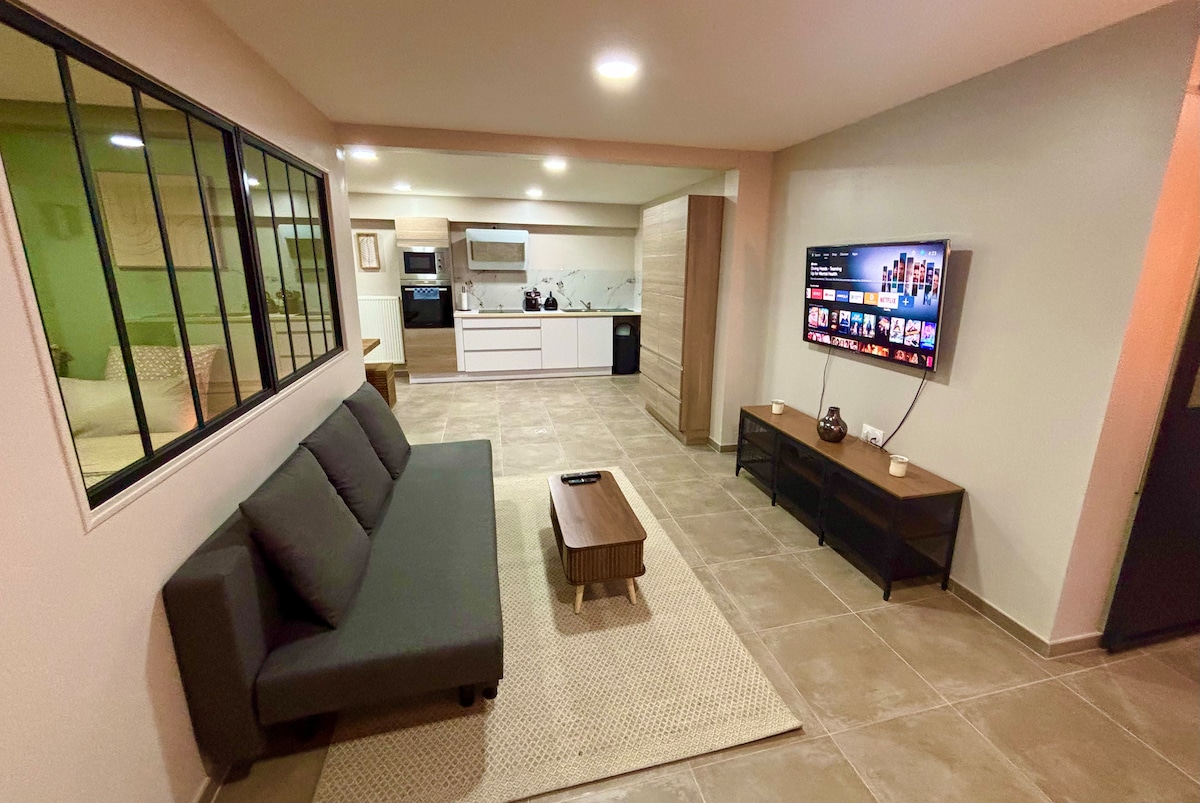 Apartament situat la etaj într-o casă contemporană cu acces independent. Aceasta este decorată într-un design și un stil rafinat. Acesta este compus dintr-un dormitor cu un pat dublu 180X200, o baie, o bucătărie în living cu o canapea extensibilă. Apartamentul de 50 mp are propriul balcon de 8 m2. Îți oferă acces privat la o zonă de fitness și o zonă de wellness constând dintr-o cadă cu hidromasaj și o saună. Cazarea este situată la mai puțin de 10 km de centrul orașului Lille.