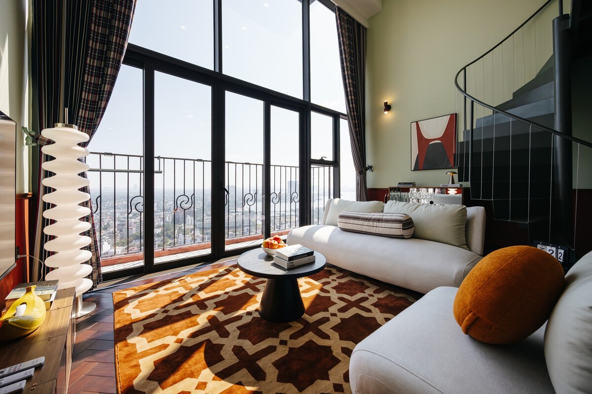 ✨ Dangi Home – Luxury Duplex Apartment in Tay Ho A colorful mid-century duplex on the 20th floor with full West Lake views. Fully equipped kitchen, cozy living room with Netflix, bathtub, and all essential amenities for a comfortable and effortless stay. Prime Location • 5-minute walk to Lotte Mall West Lake – shopping, dining & entertainment • 15 minutes to the Old Quarter • 20-minute drive to Noi Bai International Airport • Surrounded by cafes, restaurants, Winmart, and Highlands Coffee