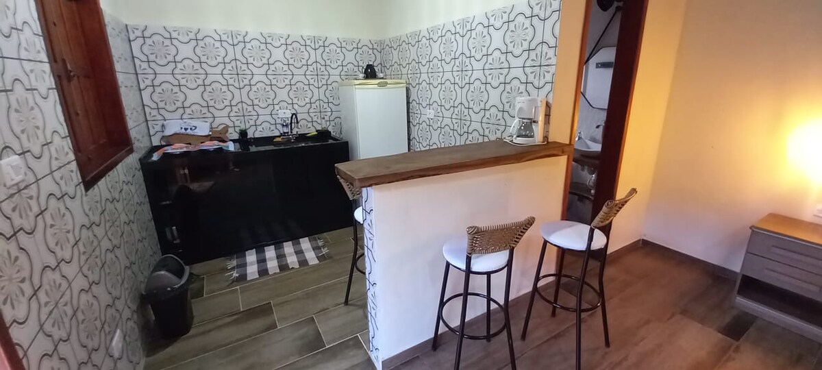 Apartament: 1 pat dublu. Dormitor: 1 pat dublu Saltea cu canapea extensibilă suplimentară TV cu șemineu cu 2 băi Bucătărie echipată (aragaz, cuptor cu microunde, frigider și ustensile) Grătar Situat în apropiere de Cabanele Alphaville, iar centrul Vila de Conceição do Ibitipoca (1 km) este aproape de toate barurile, restaurantele și comerțul pe care satul le oferă și la 4 km de intrarea în Parcul de Stat.