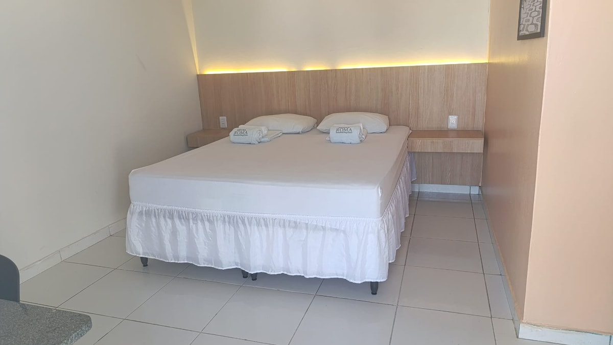 Suíte para casal. Ideal para estadias curtas. Ambiente espaçoso e silencioso.