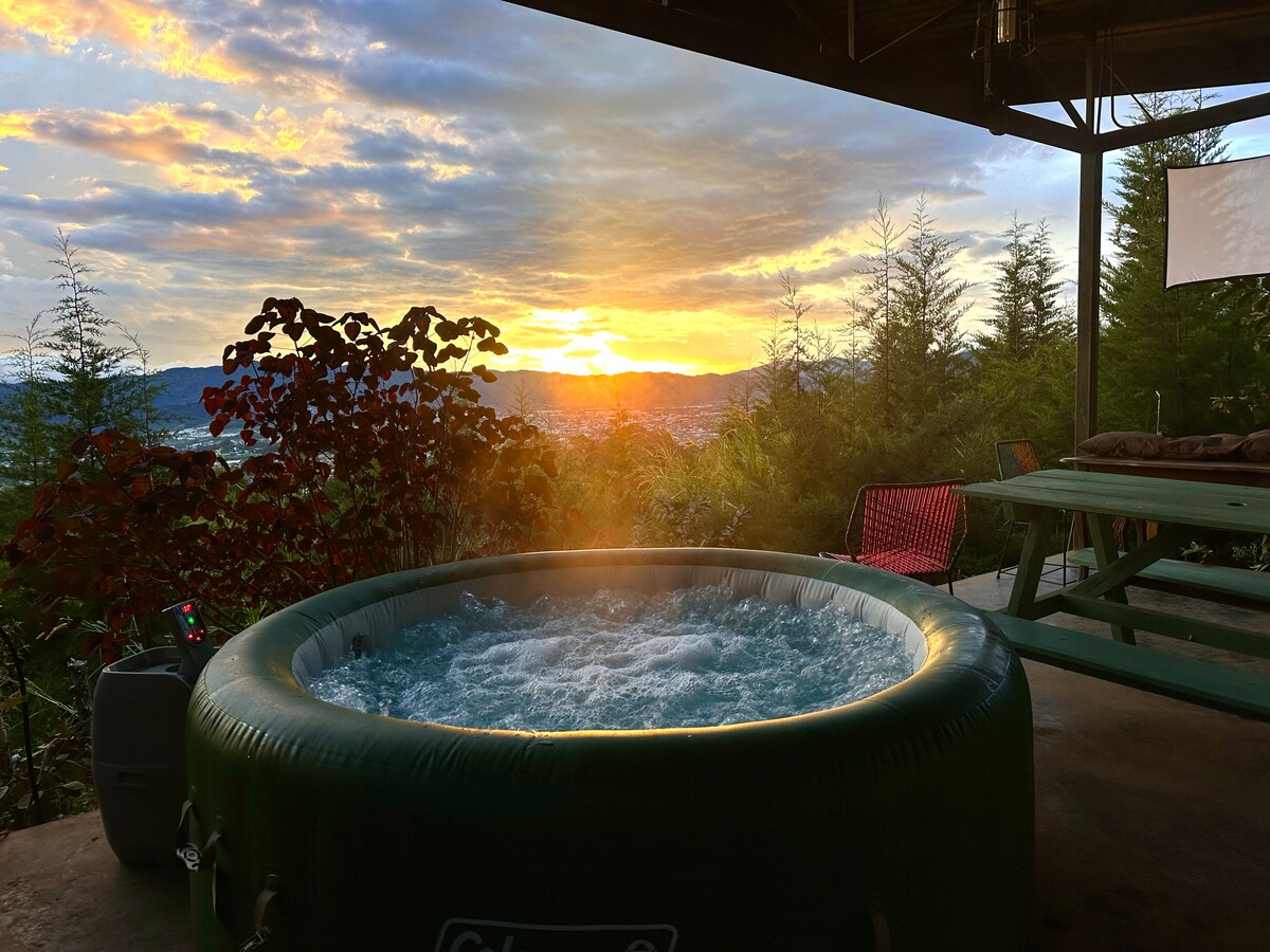 Oferim o cupolă cu jacuzzi pe o platformă înaltă de 6 metri, care îți va permite o experiență unică atunci când te bucuri de priveliștile sale grandioase de pe terasă în timp ce te relaxezi în jacuzzi-ul nostru privat. Oferim servicii de decorare pentru acele zile speciale. Bucură-te de spațiile noastre comune: - Puncte de vedere - Rancho (grătar, masă de biliard și masă de foosball) - Grădină - Mese de exterior - Pergolă - Zone verzi. - Încărcător pentru mașini electrice t1-t2 (cost suplimentar)