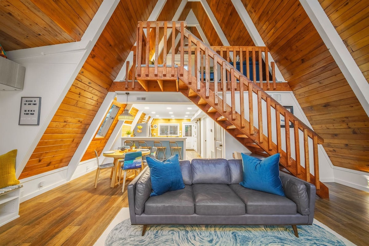 AwayFrame on the Oregon Coast | By Hooray Stays „A” din anii 1960 își păstrează stilul de la mijlocul secolului, cu facilități luxoase și moderne: saună cu butoaie, cadă cu hidromasaj privată și bucătărie de bucătar pentru a asigura un sejur excepțional și relaxare. De la frumosul design și tavane boltite până la șemineul scandinav, această locuință își propune să te mulțumească, fie că este vorba de o noapte confortabilă în sau de o zi pe plaja cu nisip. Doar o scurtă plimbare până la Oceanul Pacific, magazine și restaurante cu gurmanzi. Totul este bine amenajat ținând cont de oaspeții noștri