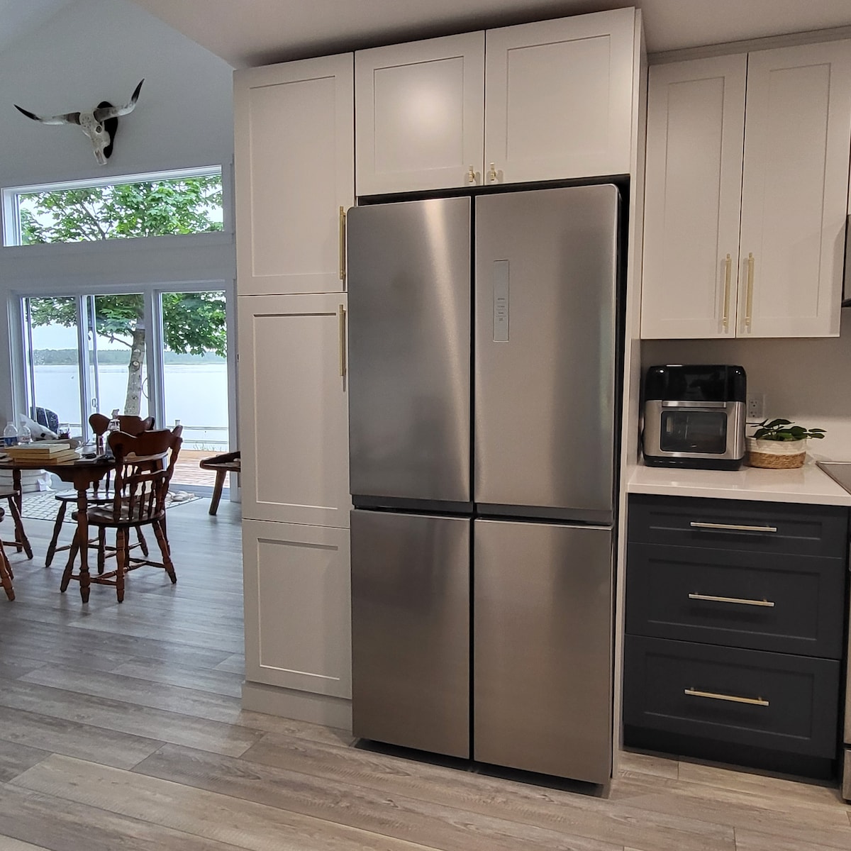 Casă lângă râu, cu apartament privat modern securizat și intrare, loc de cazare perfect pentru muncă sau petrecere a timpului liber. Pregătește-ți cafeaua de dimineață și micul dejun cu vedere la frumosul râu Miramichi și bucură-te de băutura de seară pe scaunele de club în zona de lounge relaxantă, urmărind pachetul TV din fibră pe ecranul plat de 50". Retrage-te în dormitorul spațios, lasă lenjeria de pat proaspătă, fă-ți timp de check-in împreună cu prietenii și familia de pe rețelele de socializare, cu WiFi gratuit, înainte de a ațipea pentru un somn bun.