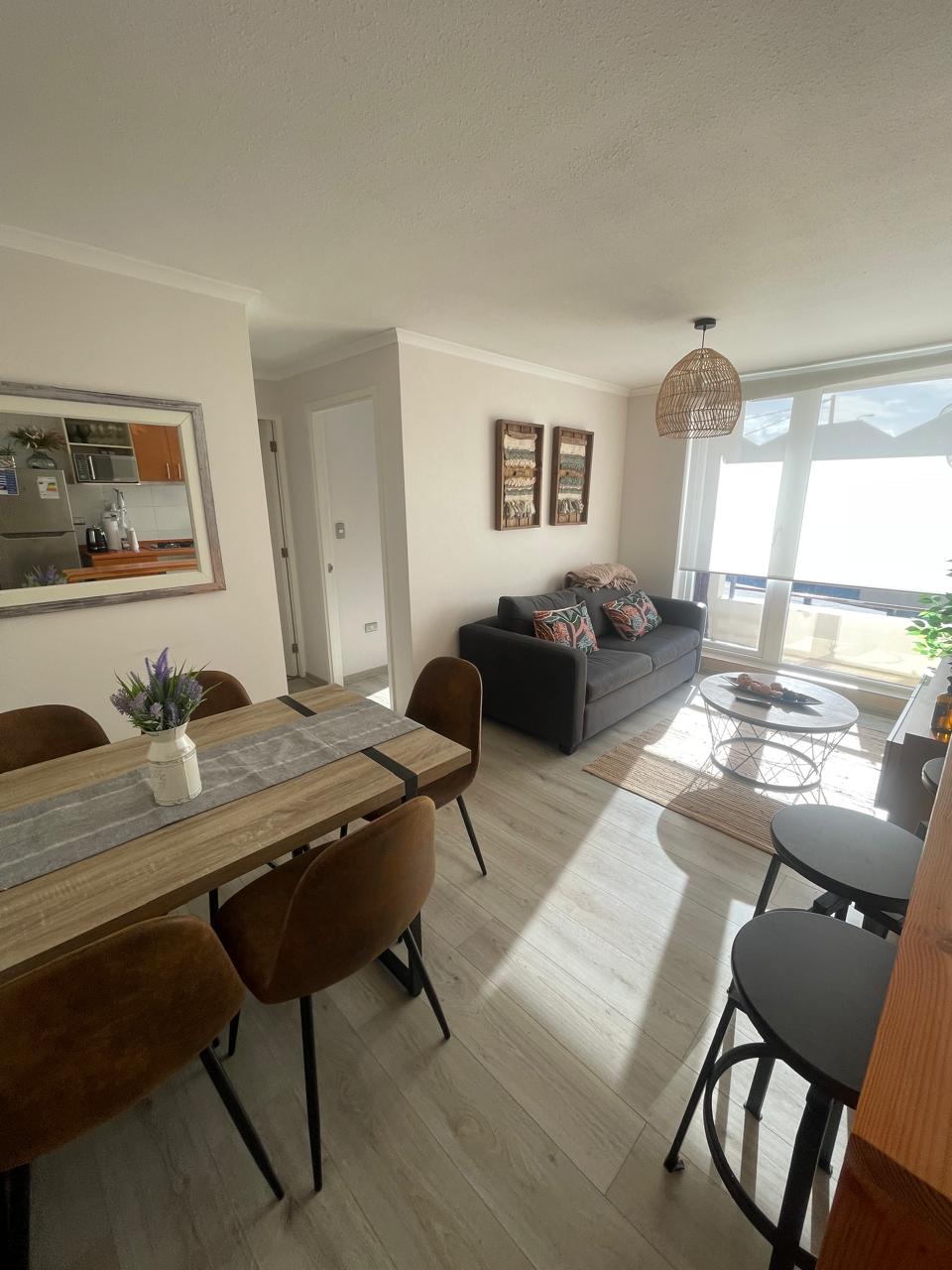 Garsonieră nouă și confortabilă în cea mai bună locație din Pucón, la câțiva pași de plaja mare, centrul orașului și izolată de zgomotul străzii principale. Are un pat cu 2 locuri, o canapea extensibilă cu 2 locuri, o bucătărie complet utilată, baie completă, WiFi, TV de 49"cu Netflix, Disney+ și multe altele, o terasă, un încălzitor, un grătar, cafetiere, 2 biciclete pentru utilizare nelimitată, printre altele. Parcare publică în fața accesului la clădire. Acesta include lenjerie de pat, prosoape și articole de bază pentru baie și bucătărie pentru fiecare ședere.