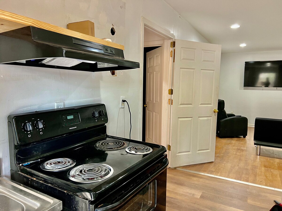 Aceasta este o căsuță în mijlocul orașului. Este un plan al etajului deschis, cu 1 pat king-size, 1 canapea și paturi extensibile disponibile la cerere. Bucură-te de confortul de a putea merge pe jos până la tot ce se află în oraș și de liniștea unui spațiu cu tematică rustică. La doar câțiva pași de unele clădiri frumos restaurate și convenabil pentru lacul orașului și traseele de mers pe jos. Animalele de companie nu sunt permise înăuntru.