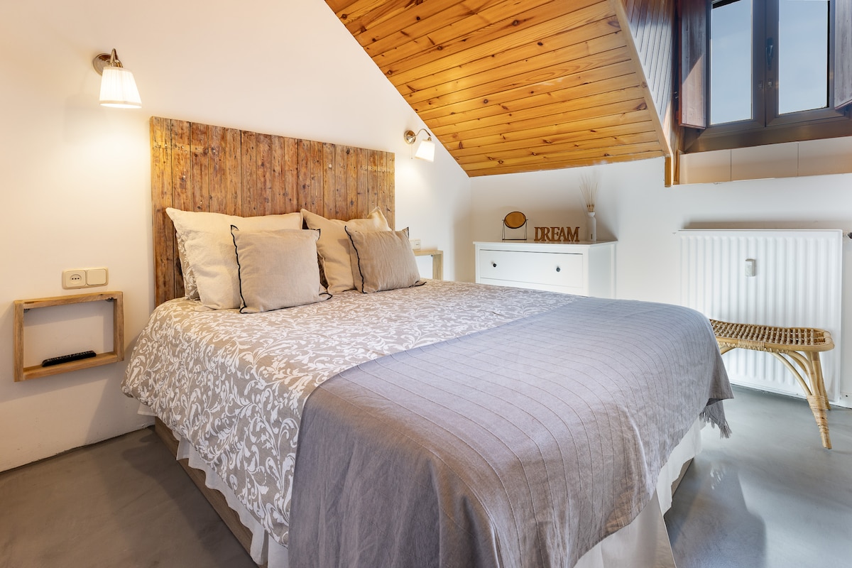 Acasă este un paradis făcut realitate pentru a-ți surprinde partenerul sau o ședere la prieteni. Acest penthouse rural exclusivist și original, cu SPA privat, te va încânta din primul moment și până la sfârșitul șederii tale... are o vedere panoramică și frontală a muntelui/muntelui, care îți taie răsuflarea. Vă veți bucura de o zonă de SPA privată exclusivă și de lux la domiciliu: saună complet privată și jacuzzi, iar jacuzzi și saună pot găzdui 3 persoane.
