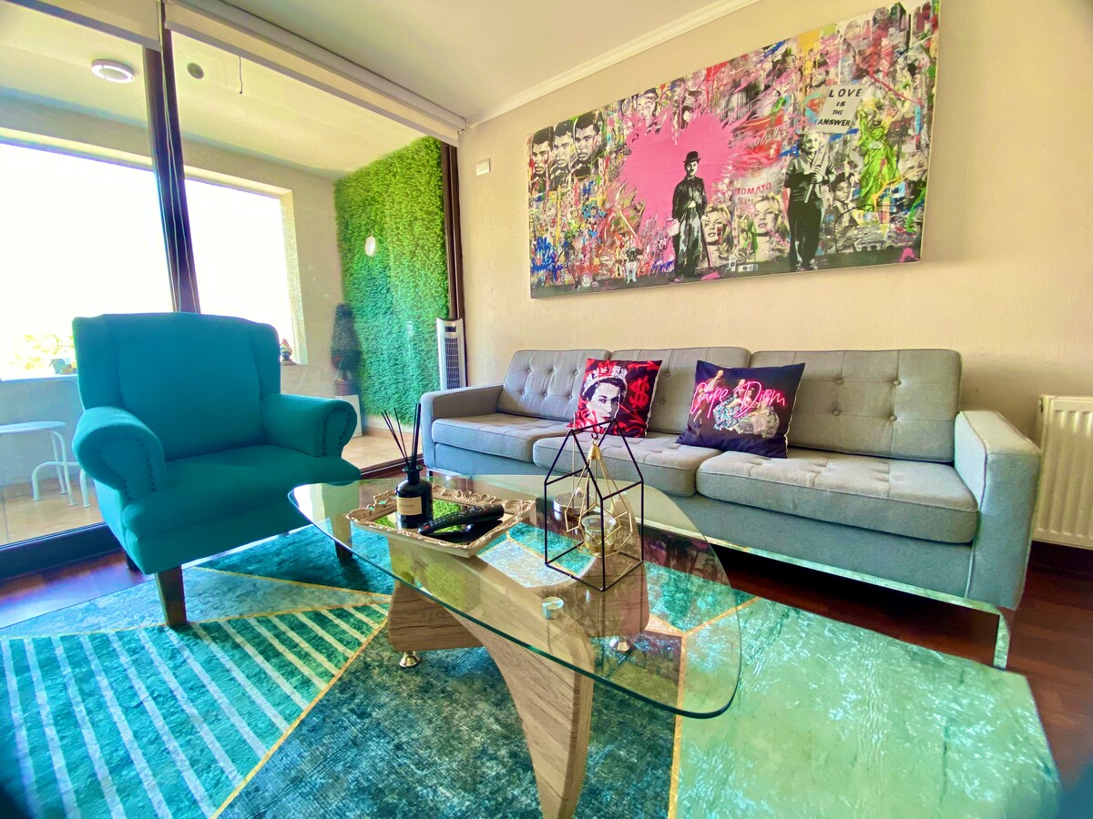 Spațios și rafinat de 110 metri. plus terasă! Living, sufragerie și bucătărie integrată complet utilată: frigider lateral, cuptor electric, cuptor cu microunde, cuptor cu microunde, bucătărie ceramică, aragaz ceramic, hotă, mașină de spălat vase. mașină de spălat / uscător. Terasa are un grătar cu gaz încorporat. Interiorul este spațios și foarte confortabil. Decorul este nordic și relaxat. Baia principală are un duș dublu și există o altă baie completă pentru vizitatori. Are parcare subterană și parcare pentru vizitatori