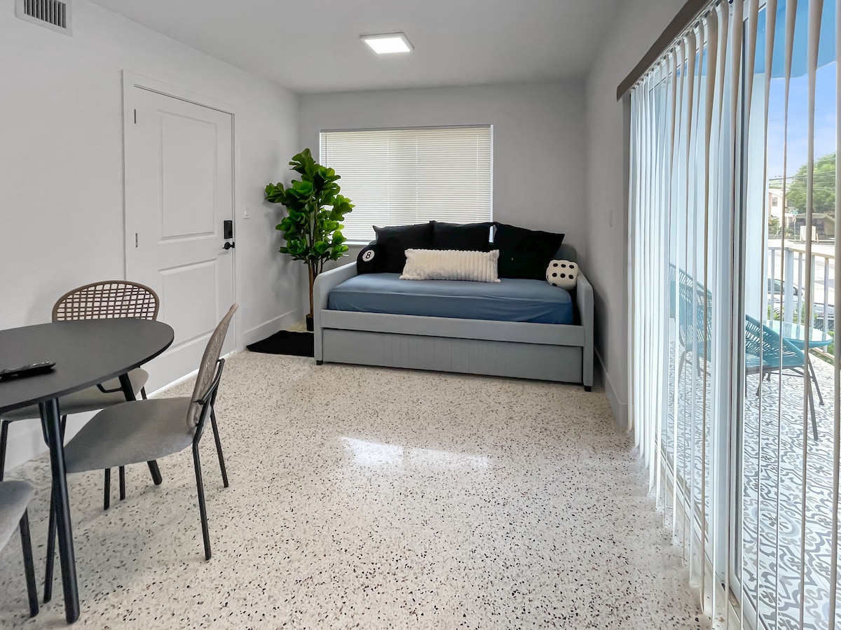 Fermecător și diferențiat NorthCoconut Grove loft/studio. Cufundat în verdeață, de care te vei bucura pe terasa privată. Recent renovat, cu toate dotările și aparatele electrocasnice de top. Ideal pentru 2 persoane. Poate dormi până la 4 persoane (pat matrimonial + canapea extensibilă). Acces ușor și rapid la I-95, Aeroportul MIA, Coral Gables, Brickell, Wynwood și Downtow. Parcare gratuită în fața unității. Aproape de calea ferată. Animalele de companie sunt binevenite! Te rugăm să ne informezi atunci când rezervi. Taxa suplimentară este de 100 USD per ședere per animal de companie. — Fumatul nu este permis