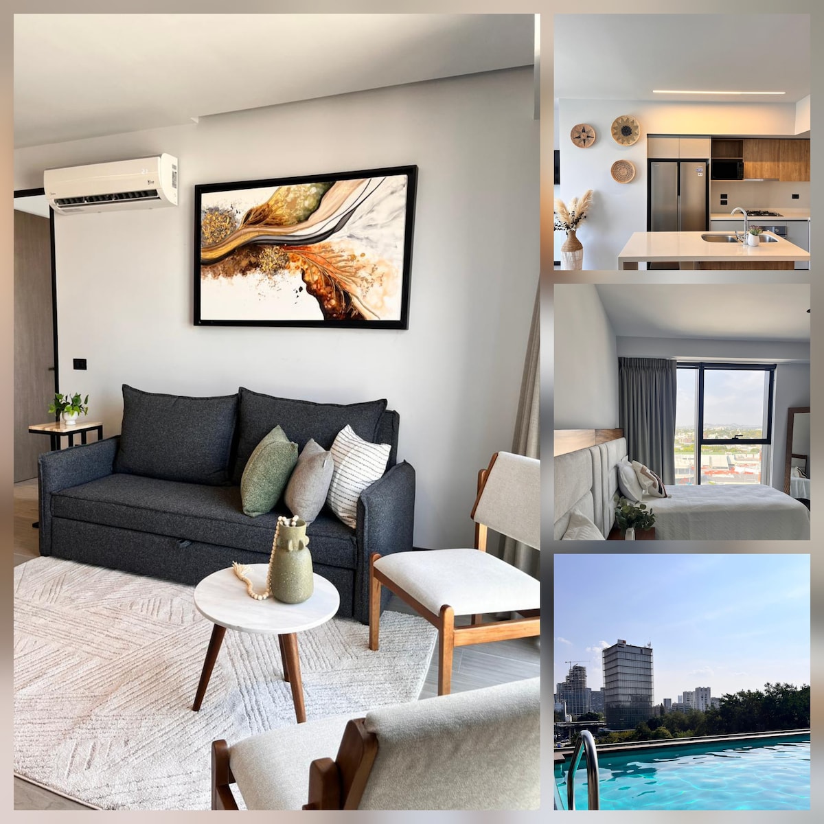 ¡Bienvenido a nuestro lujoso departamento en la torre top de la Americana! El espacio fue amueblado por diseñadores para una experiencia de alojamiento excepcional. Disfruta las mejores amenidades: alberca infinity, gimnasio, cancha de pádel, terraza, bar, parking y recepción las 24 horas. Con una ubicación privilegiada en la zona "más cool del mundo" estarás rodeado de la mejor oferta gastronómica, cultural y de entretenimiento. ¡Esperamos darte la bienvenida pronto!