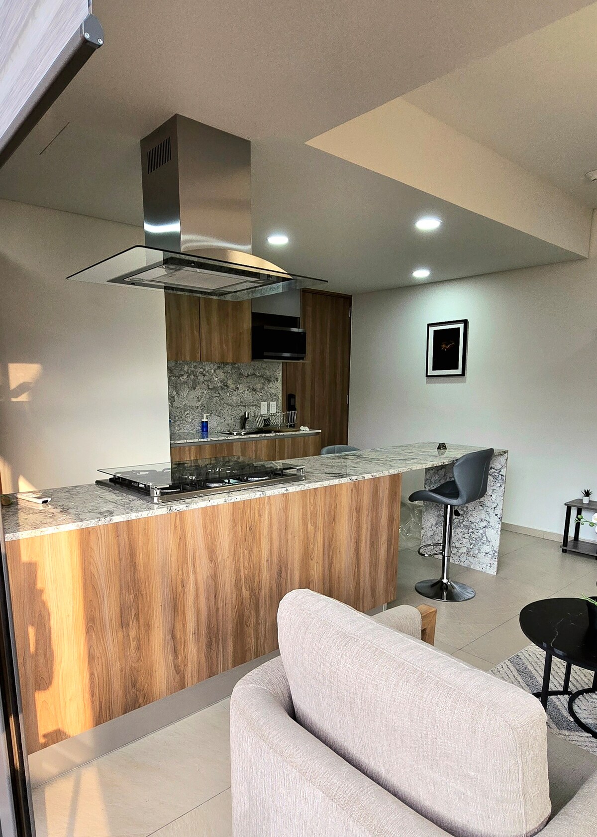 Apartament luxos în Guadalajara, decorat de biroul FNisino și cu mobilier personalizat de meșteri locali. Stai într-una dintre cele mai exclusive și noi clădiri din Providencia, aproape de zona financiară, Bosque Colomos, Punto Sao Paulo și la numai 10 minute de Andares. Spațiu excepțional de confortabil, care are toate facilitățile și te va face să ai o ședere incredibilă. Are securitate 24/7, o piscină, sală de gimnastică, coworking și parcare proprie.