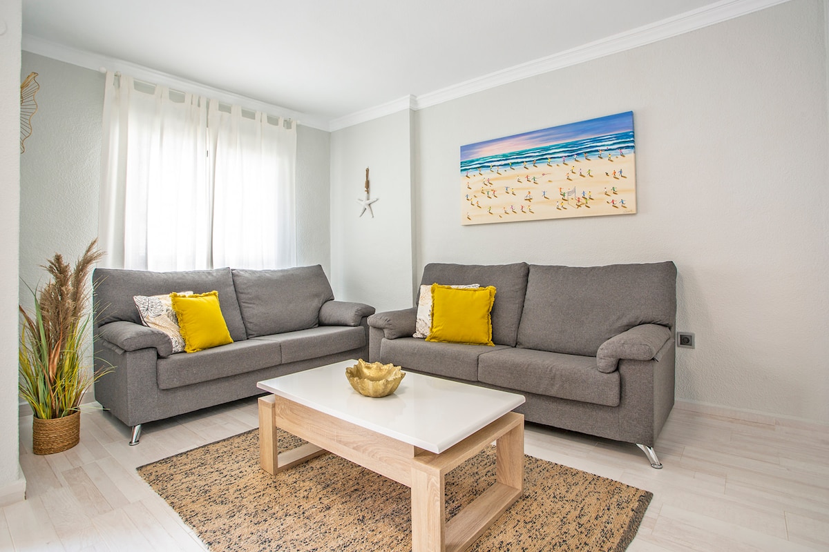Oasis for your relax a stone's throw from the sea. Just 150 meters from Los Locos Beach. Beautiful apartment with 2 bedrooms and terrace overlooking the pool. Styled in Scandinavian and boho decor, it features Wi-Fi, TV, air conditioning, and a snack corner with coffee and treats. Ideal for families, couples, and professionals.
