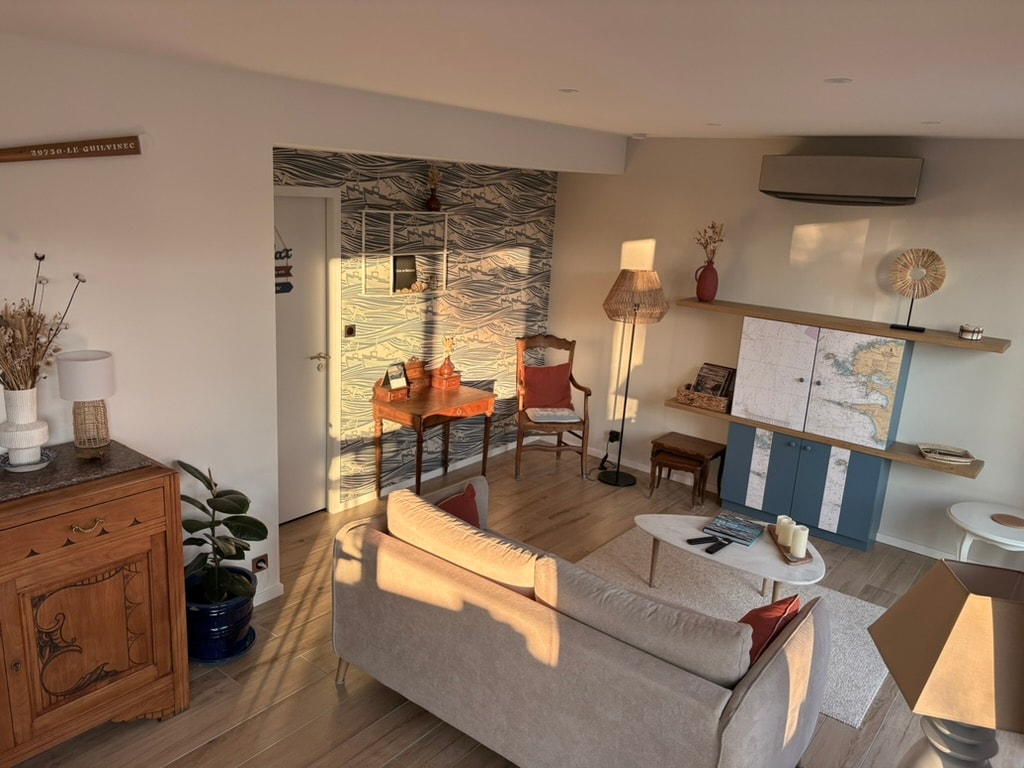 Profitez du charme de la station balnéaire réputé de Bénodet (5 étoiles), avec ce très bel appartement T2, très lumineux, entièrement rénové, au 1er étage d'une petite résidence exceptionnellement calme, avec une magnifique vue mer. La résidence est idéalement située, à proximité de deux plages de sable fin, proche de tous commerces, de restaurants (dont les cartes des meilleures adresses seront disponibles), d'un cinéma, d'un casino et d'une Thalasso entièrement rénovée (le tout à 500 m).