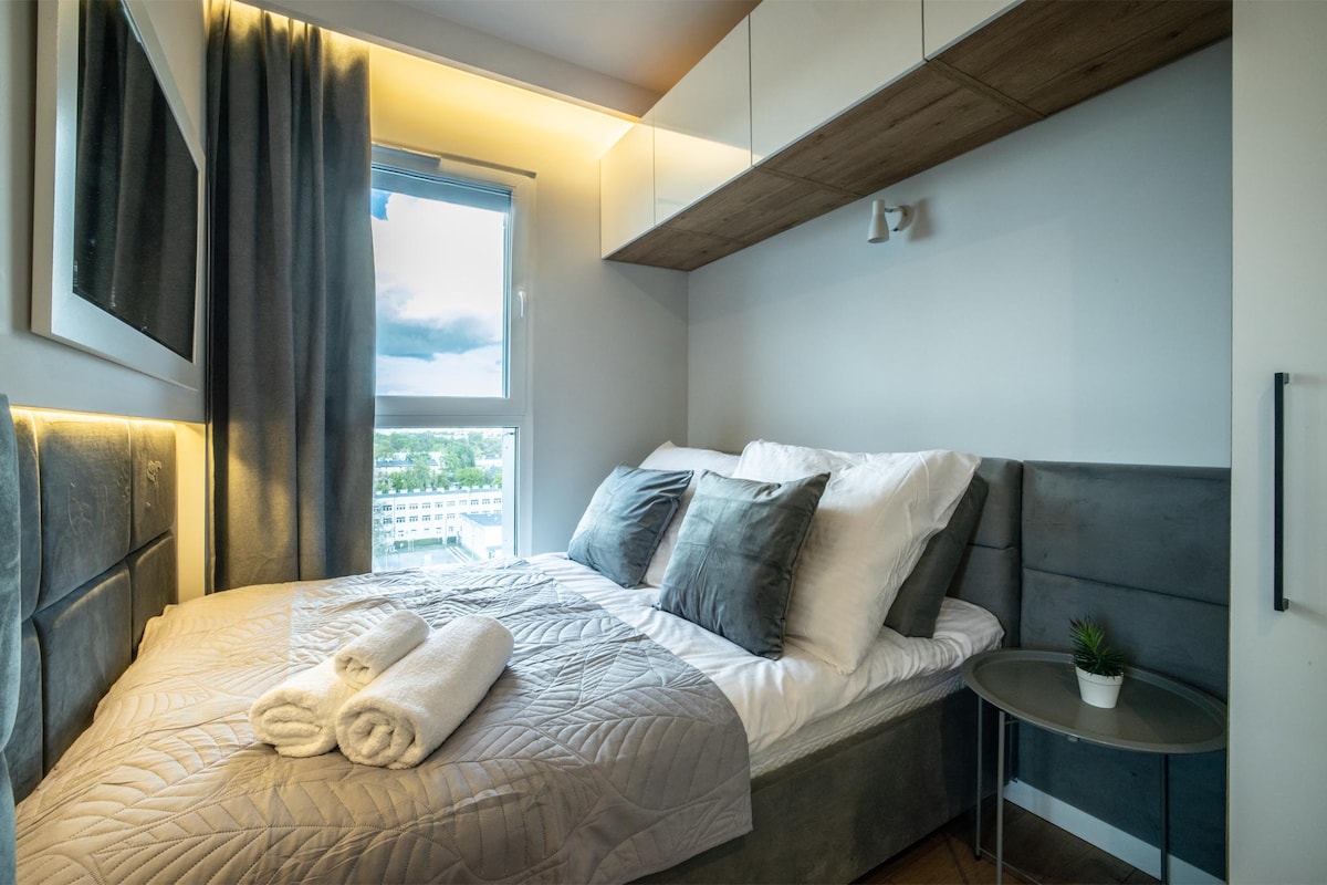 ENG below / Ten apartament to mix wyrafinowania i współczesnego designu / Bezpłatny parking podziemny / Feel of a hotel, convenience of an airbnb / Mieszkanie jest wyposażone na każdą codzienna okoliczność, tak by spełnić wymagania gości przybywających nawet na długie wizyty. W razie potrzeby - komfortowa rozkładana sofa oferuje dodatkowe miejsca do spania. Funkcjonalna, stonowana przestrzeń sprzyja skupieniu podczas biznesowego wyjazdu, jak i relaksowi, kiedy słońce zachodzi nad miastem.