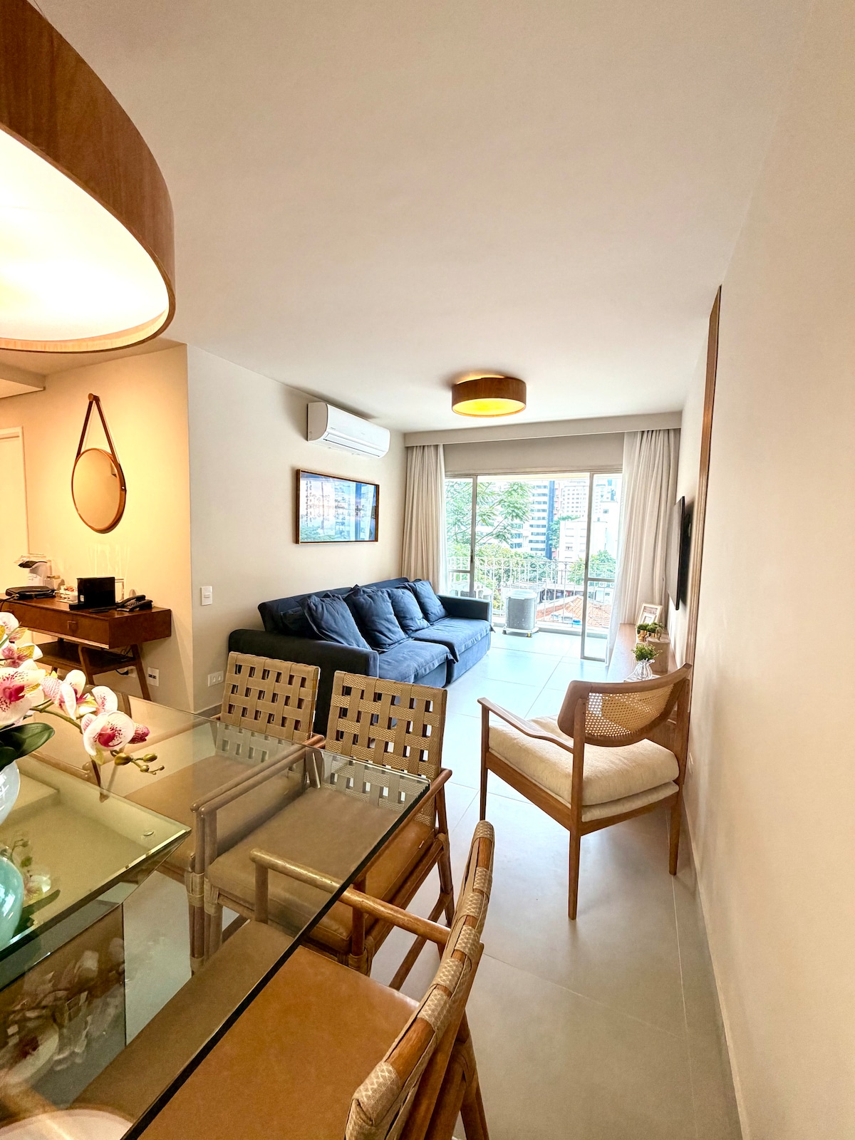 Întregul APARTAMENT renovat în Pinheiros la mai puțin de 5 minute de metroul Oscar Freire, cu 2 balcoane. Toate noi, mobilier, bucătărie utilată, 2 televizoare inteligente, Wi-Fi de 600 MB, aer condiționat Q/F în dormitor și living, pat matrimonial, canapea extensibilă, cuptor cu microunde, aparat de cafea, filtru de apă, trousseau de înaltă calitate și tot ce ai nevoie pentru o ședere perfectă. Aproape de baruri, restaurante, supermarketuri, la doar câteva străzi distanță de Hosp. das Clínicas și Paulista. Securitate non-stop, centru de fitness, parcare cu 2 locuri, piscină.