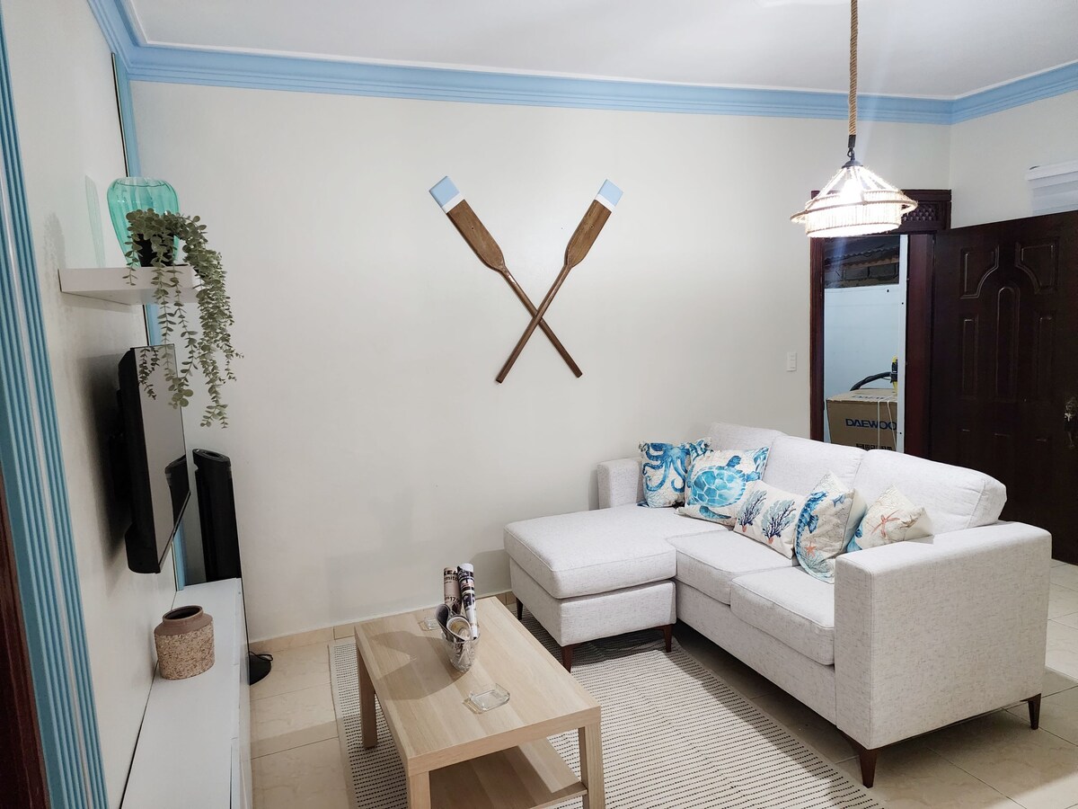 Dacă vizitați Samaná, mergeți cu noi și vă simțiți ca acasă, suntem situați pe un mic deal care este foarte ușor de accesat, aproape de tot ce se află în Samaná, vă oferim un apartament frumos cu un pat în camera principală și un pat extensibil în living și o vedere de oriunde în apartament pe care nu o veți uita niciodată, parchez în incintă cu securitate privată pe timp de noapte.