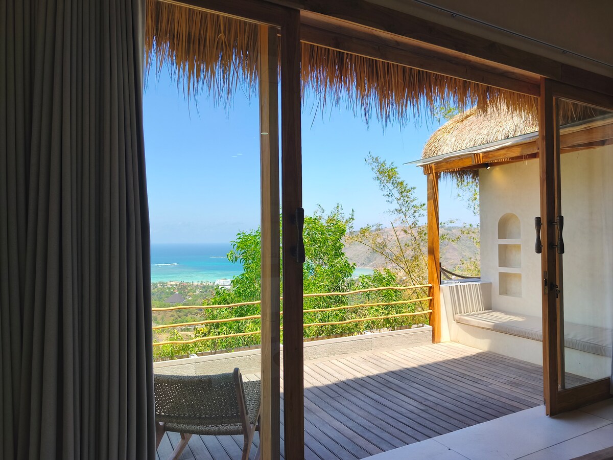 Vilă de designer cu 2 dormitoare, cu vedere panoramică la Golful Selong Belanak. Bucură-te de o piscină infinită privată de 12,5 m, un foișor de yoga și o viață fără probleme în interior și în aer liber. Cu 150 mp de spațiu interior și o terasă de 50 mp, acest refugiu modern se află la 60 de metri deasupra nivelului mării, la doar 1,8 km de plajă. Deținută de un cuplu german, vila include mic dejun zilnic și menaj. Perfect pentru cupluri, familii sau prieteni care caută eleganță tropicală și intimitate.