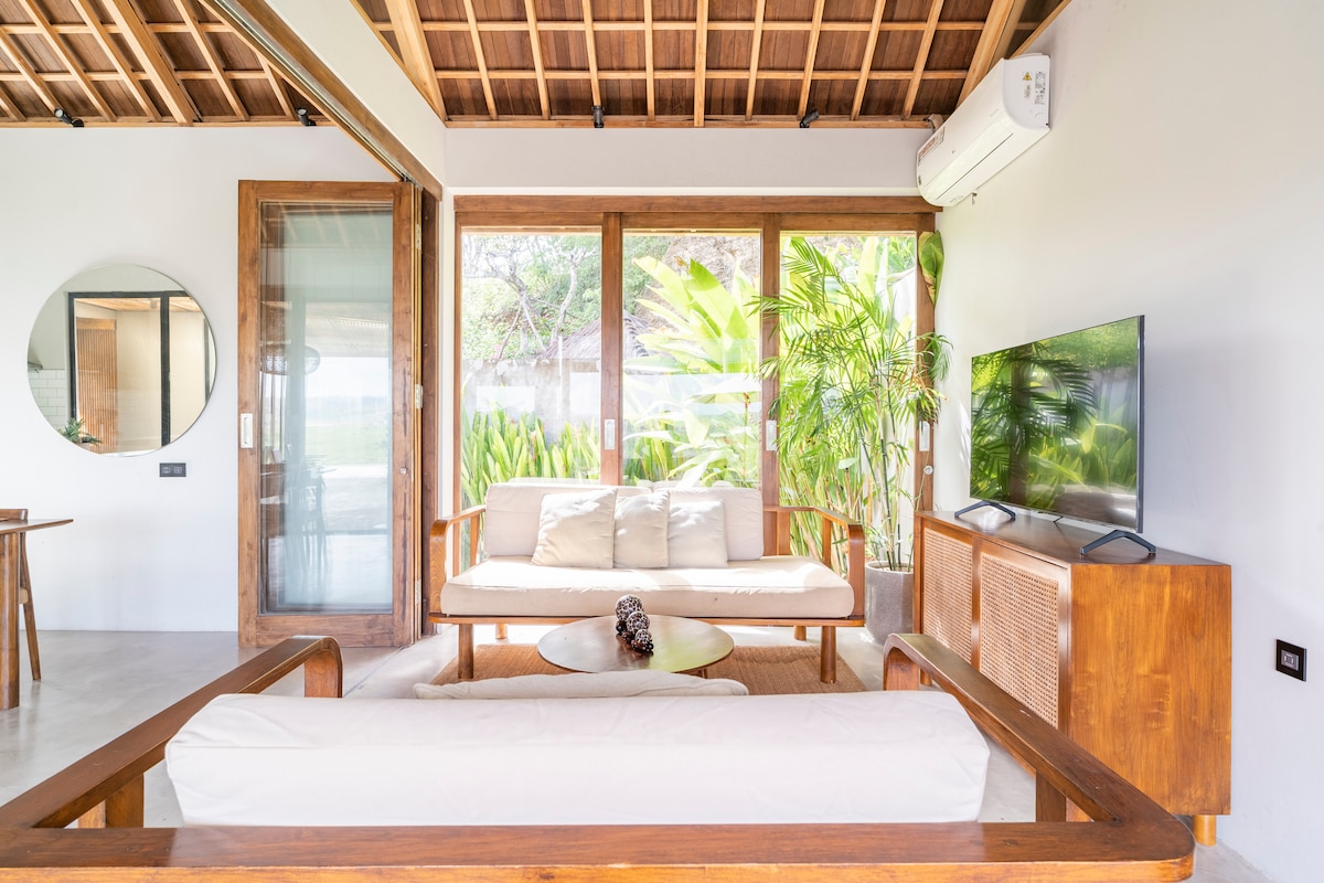 Isi este o casă confortabilă cu două etaje, cu aer condiționat, piscină, bucătărie, baie mare și grădină luxuriantă, construită din materiale naturale și înconjurată de palmieri lângă un râu mic. Isi este pentru cei cărora le place să intre în contact cu natura și viața locală. Zona este un sat rural numit Merendeng, la 15 minute de pasarela principală, la 5 minute cu scuterul. Există o parcare privată. Dormitorul oferă o vedere panoramică. Terasa mare este plăcută pentru a te relaxa, a face yoga sau a te întinde în hamac.