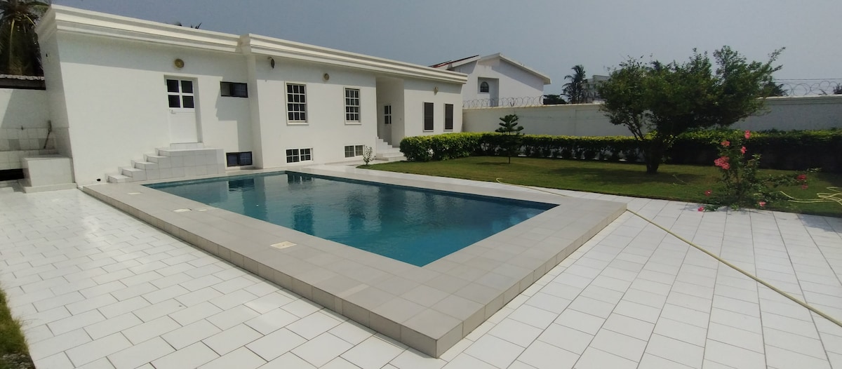 Détendez-vous dans ce logement calme et élégant.Cet hébergement est très idéal lorsque qu'on recherche un cadre pour se détendre et savourer la beauté de se retrouver dans un jardin au bord d'une piscine en famille ou entre amis. La plage sablonneuse de Lomé qui se situe à quelques mètres donne une autre dimension à cet hébergement. NB :LA VILLA SE TROUVE À BAGUIDA CÔTÉ PLAGE NON LOIN DU ROND POINT MONUMENT.