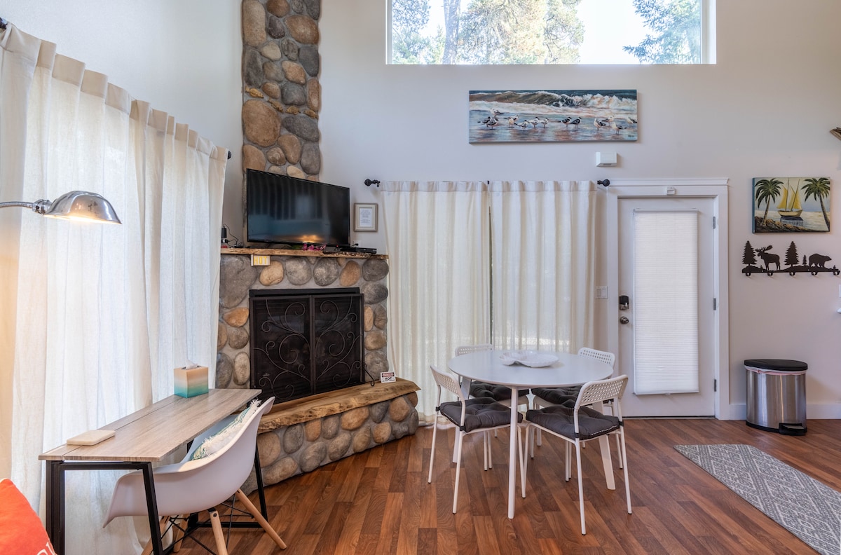 Remote lakefront retreat—boat access only. We provide all arrival details after booking. Tucked away on North Tenmile Lake, this peaceful mini-cabin is perfect for a romantic escape or quiet writer’s retreat. Features a full kitchen, full bathroom with shower/tub combo, loft with king bed and lake views. Enjoy a private dock, paddleboards, high-speed WiFi, fishing, stargazing, and morning coffee by the water. The perfect mix of peace, privacy, and nature.