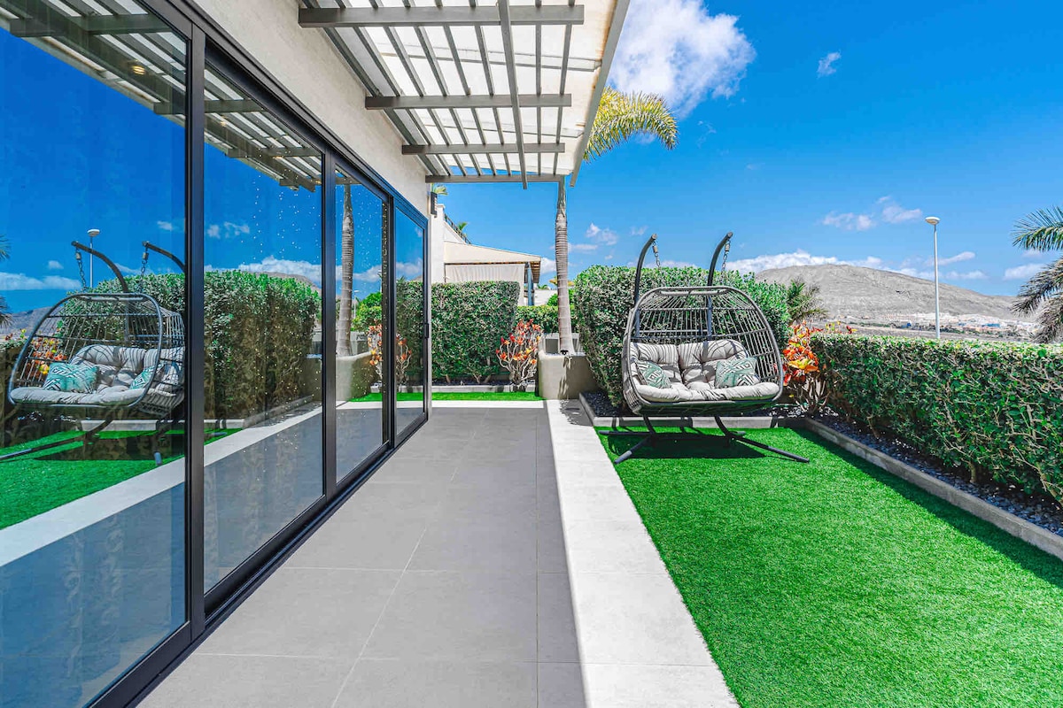 Vilă spectaculoasă în zona prestigioasă din Tenerifė - Caldera Del Rey. Se află la 200 m de parcul acvatic N1 din lume, numit de TripAdvisor la rând - SIAM PARK. 300 m se află cel mai mare centru comercial din sud - MALL-UL SIAM. Priveliști uimitoare ale stațiunii - Playa de Las Americas, ale cărei plaje se află la 1,4 km. Diferite zone de odihnă, plajă, mic dejun, cine în spații unice proiectate în detaliu. Grădină tropicală cu pergolă care umbrește toată ziua și mulțumește cu prospețimea și coloratul său. Piscină infinită care leagă apele sale de orizontul oceanului. Apusurile de soare sunt un spectacol colorat, o imagine care se schimbă în fiecare zi, dar nu pleacă niciodată indiferent. Sufragerie mare atașată cu chicinetă cu vedere la ocean. Toate dormitoarele au propria ieșire spre grădină, îmbunătățind intimitatea celuilalt. Fiecare colț al vilei trezește cele mai bune senzații și te întâmpină pentru a profita la maximum de vacanțele tale.