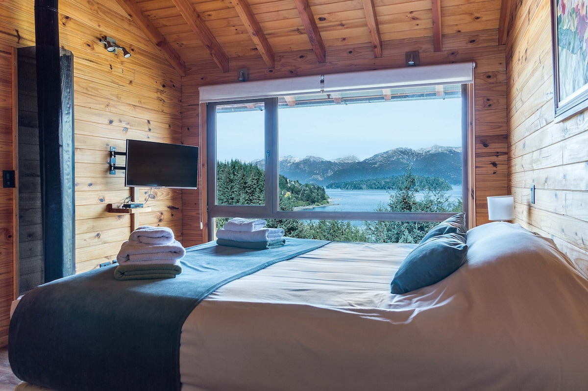 Atardeceres del Lago: refugiu patagonian cu priveliști de vis ale lacului Nahuel Huapi. Trezește-te cu panorame incredibile și bucură-te de apusuri de soare unice de pe terasa ta. Piscină încălzită cu vedere la lac. Unități dotate cu bucătărie, cuptor cu microunde, TV și baie privată. Grătar individual. Cameră de joacă cu TV, foosball și jocuri. Ideal pentru cupluri într-un cadru liniștit și liniștit. Aproape de Insula Victoria și de Pasul Cardenal Samore. Acces ușor de la Bariloche (85 km). Ideal pentru schi și aventură pe tot parcursul anului.