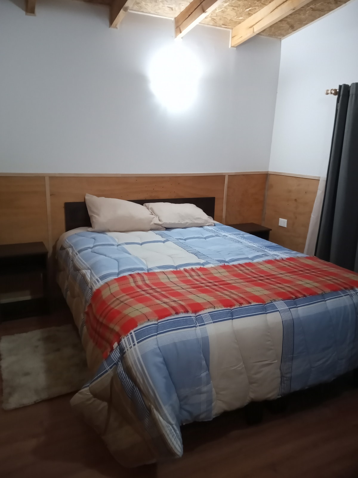 En Piedra Azul a 17 kms de Pto Montt, cercana a atractivos turísticos como Caleta La arena, Estuario del Reloncavi, Lago Chapo, Reserva Nacional Llanquihue, Volcán Calbuco, Playa Metri, Parque Nac Alerce Andino y otros, se encuentra la cabaña Canelo, equipada para 4 personas con cocina americana, 2 dormitorios, baño, lavadora, refrigerador y combustión lenta, posee un sofá cama adicional, wifi y TV. Lugar seguro y tranquilo con estacionamiento privado y con ambiente familiar