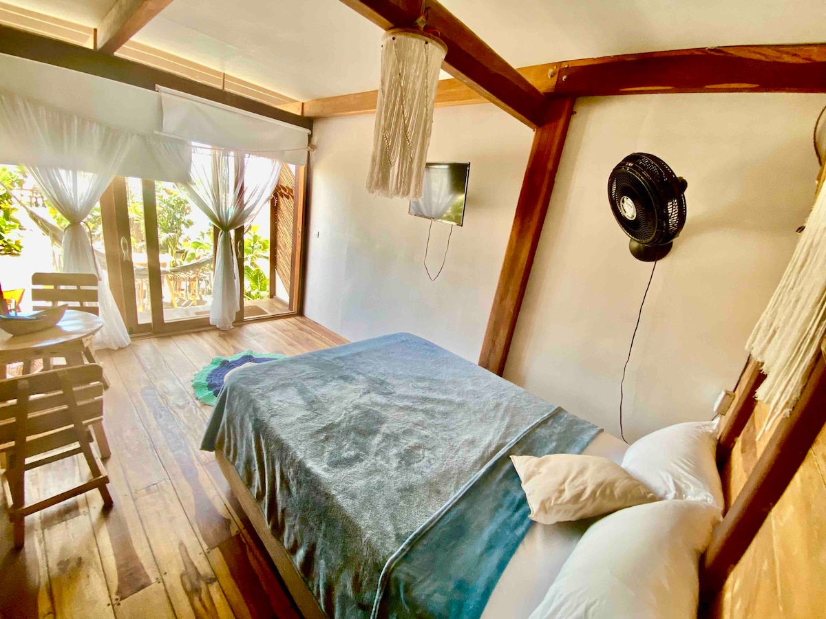 Abrazada por la selva tropical se encuentra esta cabaña, con comodidades como a/c para disfrutar del descanso; ideal para parejas o grupo de tres personas que buscan estadía en conexión con la naturaleza. La cabaña tiene una linda vista al mar Caribe y a la majestuosa Sierra Nevada de Santa Marta, a solo 2 minutos en transporte del Parque Tayrona y con fácil acceso a las playas más especiales del Caribe, como Los Ángeles y Los Naranjos a 5 minutos caminando y Los Cocos a 3 minutos en Transporte.
