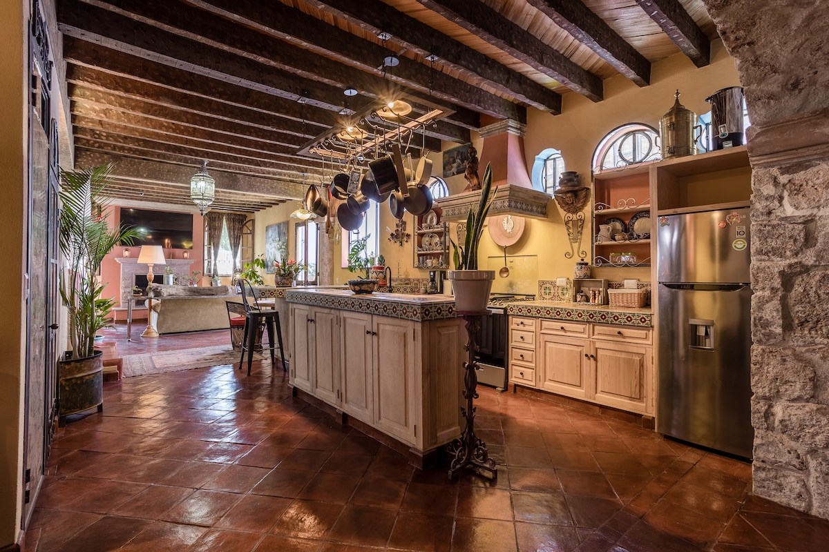 388 de ani !! Această bijuterie de arhitectură realizată manual în secolul al XVII-lea te transportă într-o experiență mexicană magică de neuitat. San Miguel a fost votat de 5 ori, 3 Condenast, 2 Travel & liesure, fiind cel mai important oraș mic din lume!! În cea mai căutată locație a districtului istoric: Un bloc la sud de piața principală. Vedere superbă a Catedralei. 4 dormitoare, 5 băi, garaj. Frumoase mobilier mexican și decor. Doarme confortabil 8 persoane și poate găzdui până la 10 persoane
