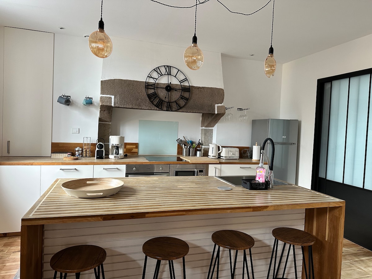 Bine ai venit la vechea noastră casă de piatră! Această proprietate este o fostă fermă, construită în secolul al XIX-lea, la 2 km de mare. Casa mică a fost complet renovată în 2021. Aici te vei bucura de: Aragaz pe lemne în șemineu, living în stil chinezesc și bucătărie complet utilată, Dormitor și baie Tatami la etaj, Intrare exclusivă și parcare (gratuit).