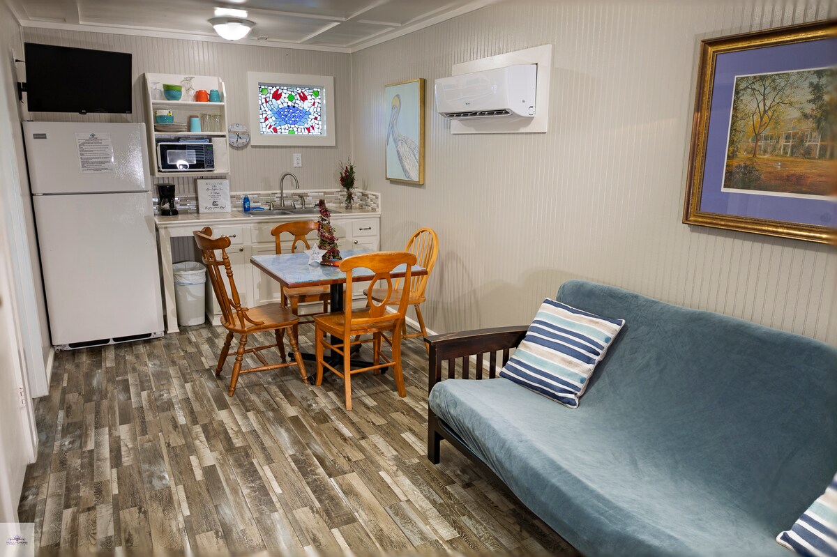 Situată pe plajă, această suită Deluxe are 2 dormitoare cu un pat dublu în fiecare. Acesta include, de asemenea, un futon în sufragerie, care se transformă într-un pat dublu. Chicineta are frigider de dimensiuni normale, chiuvetă, cuptor cu microunde, cafetieră și veselă disponibile. Nu există aragaz în unitate, dar oferim grătare în aer liber, arzătoare cu gaz și oale pentru fierberea fructelor de mare.